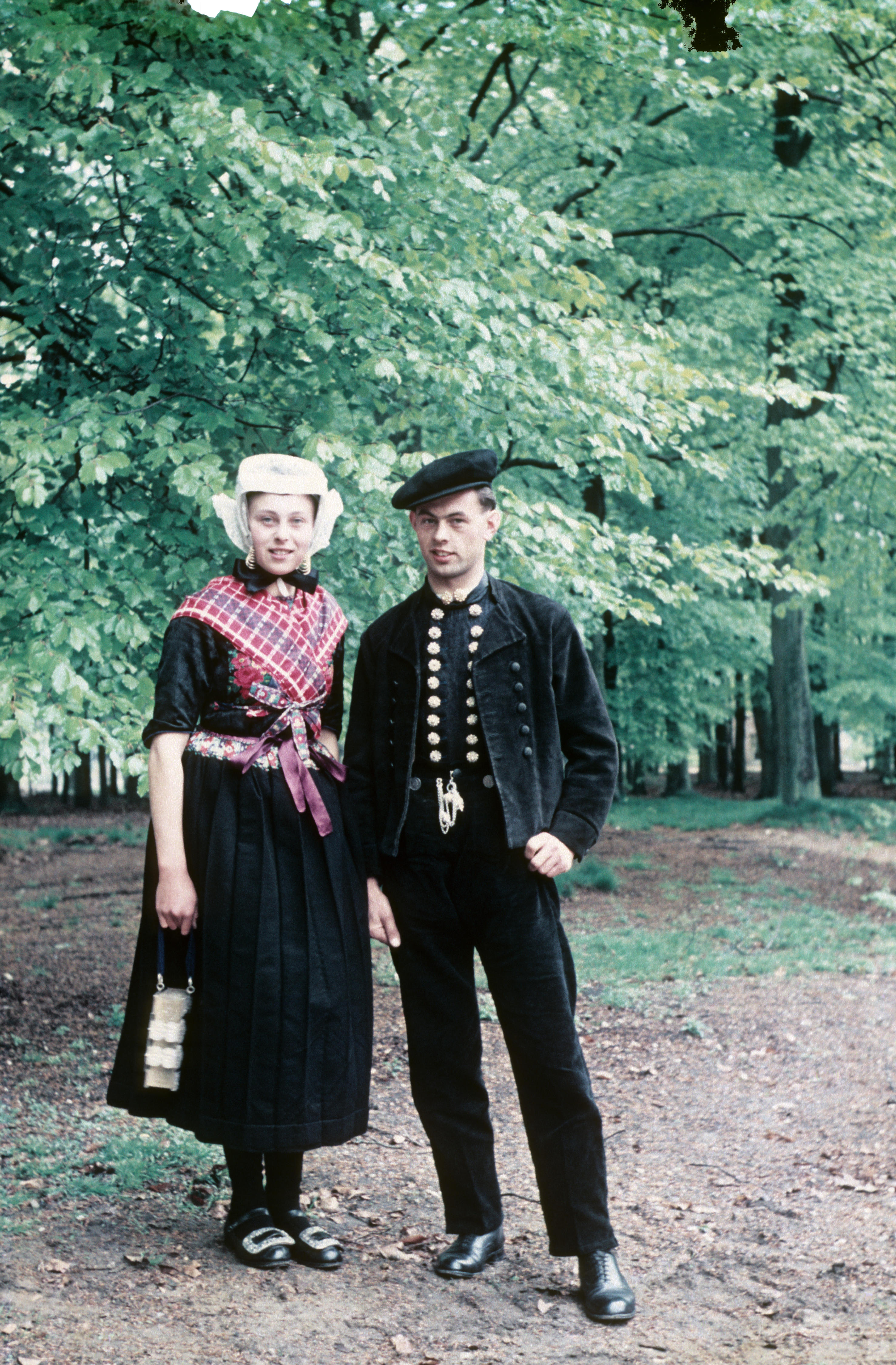 Man en vrouw in Scheveningse dracht, 1955 (diapositief)