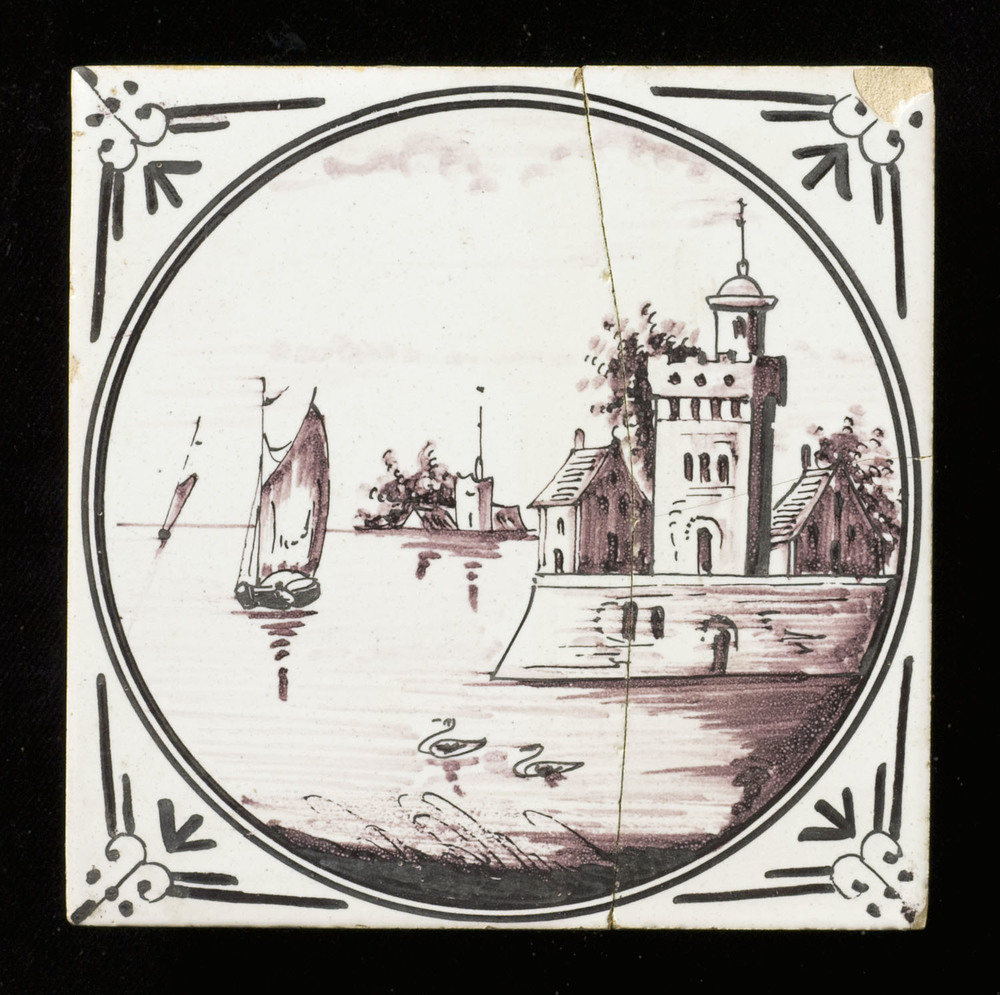 Tegel van keramiek met tinglazuur, voorstellende: ru...