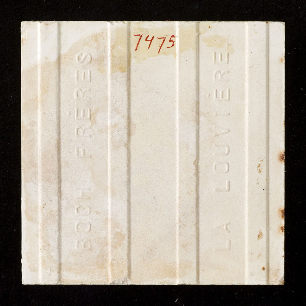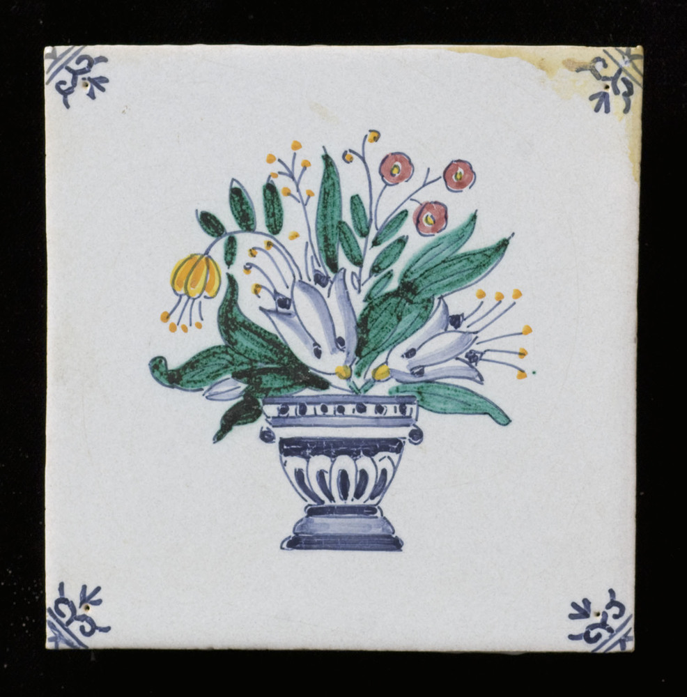 Tegel in tinglazuur, voorstellende drietulp, vervaar...