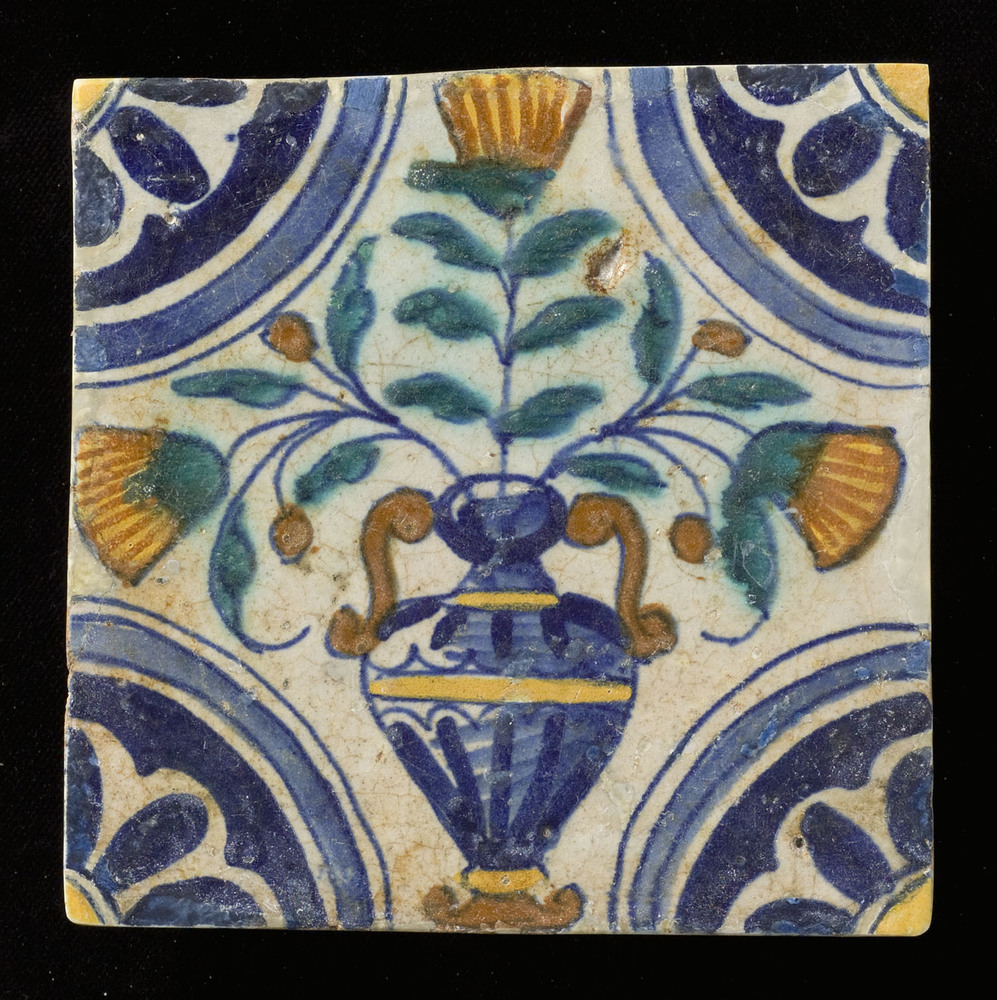Tegel van keramiek, tinglazuur, voorstellende orname...