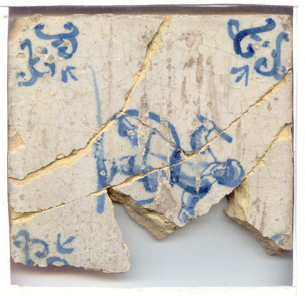 Tegel van keramiek met tinglazuur, voorstellende: He...