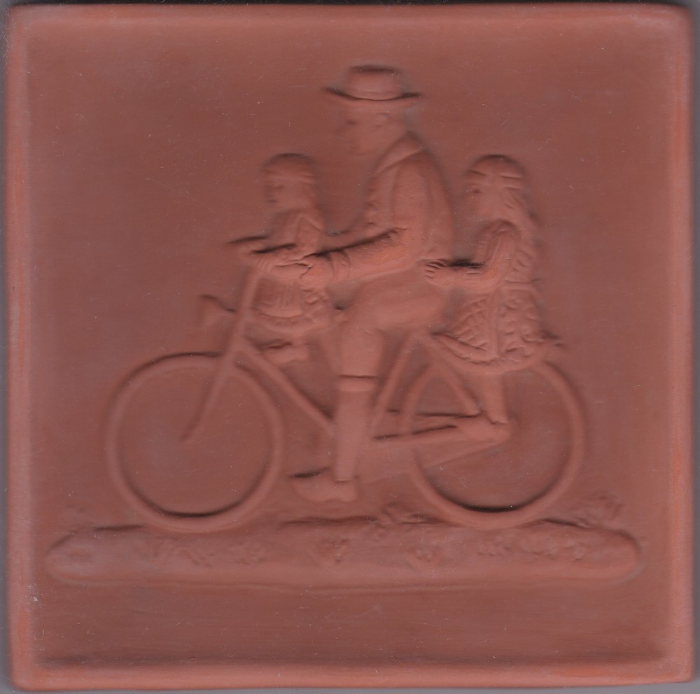 Tegel in reliëf, met voorstelling: Marken, vader met...