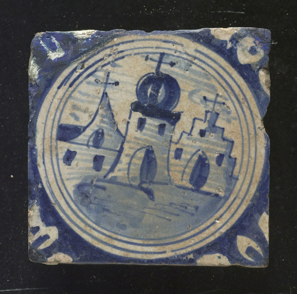 Tegel van keramiek met tinglazuur, voorstellende: ru...