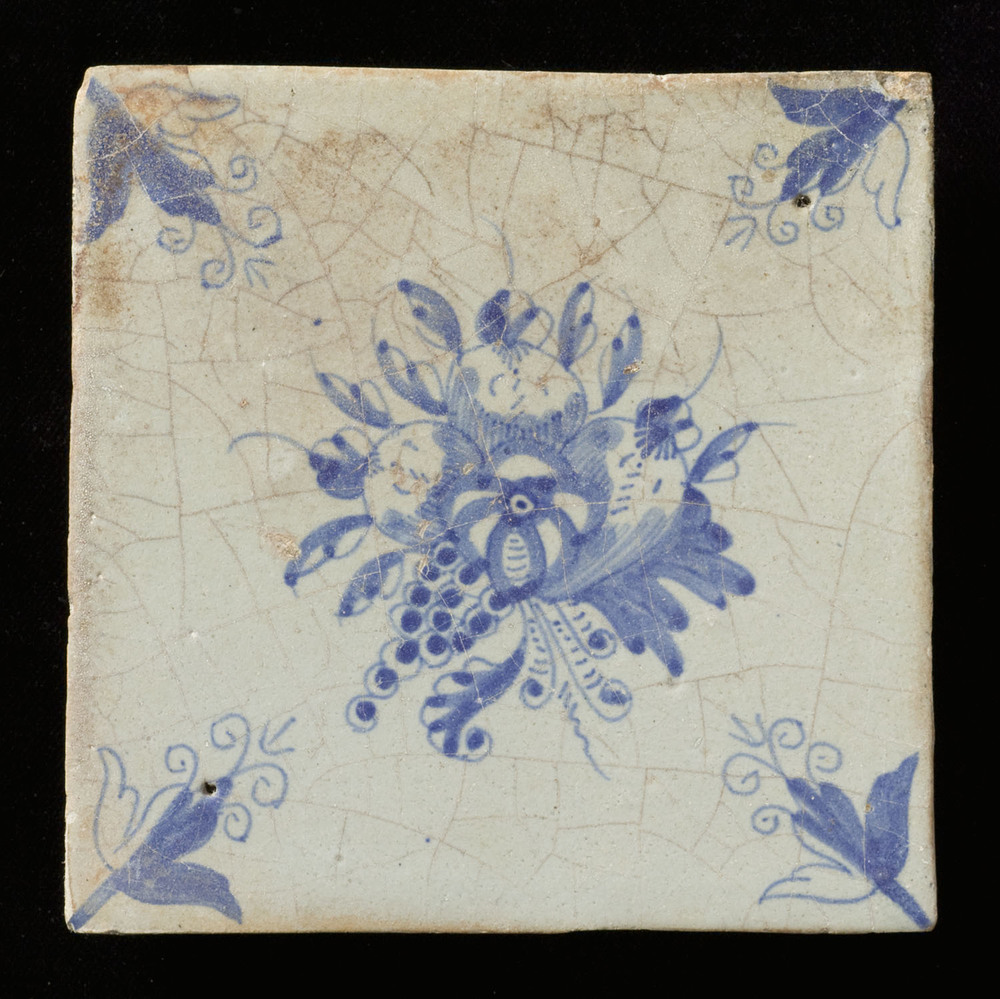 Tegel in tinglazuur, voorstellende fruittoef, vervaa...