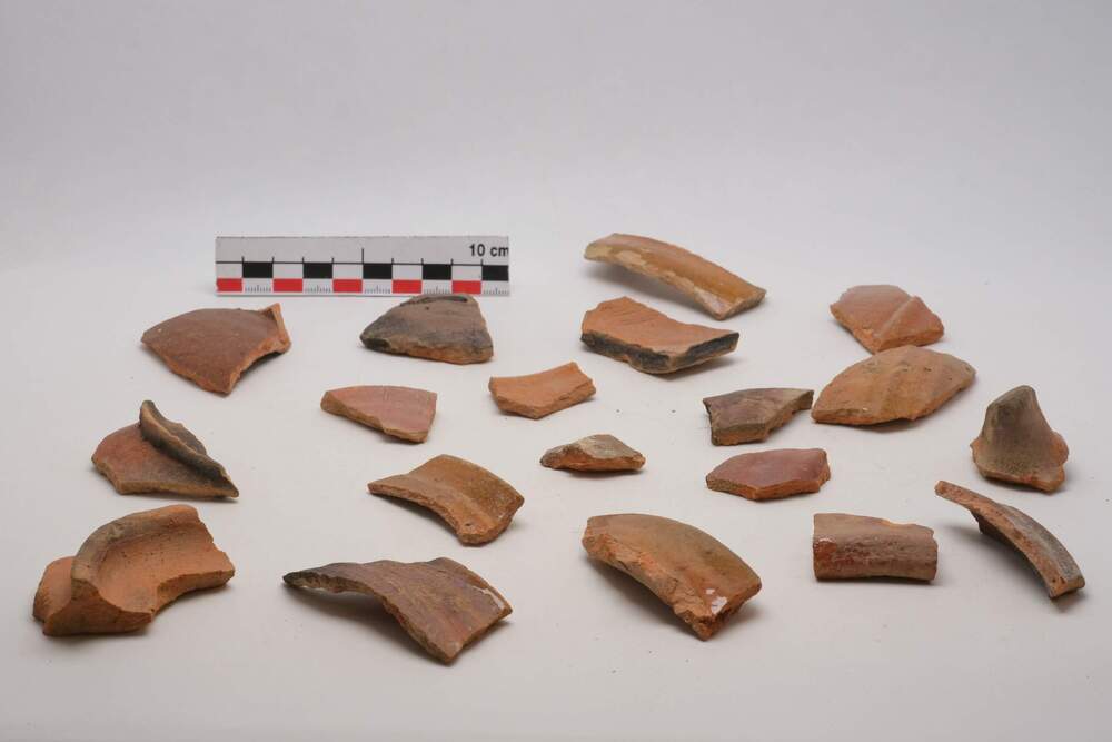 Fragmenten, baksteen/been/ijzer/aardewerk/glas,