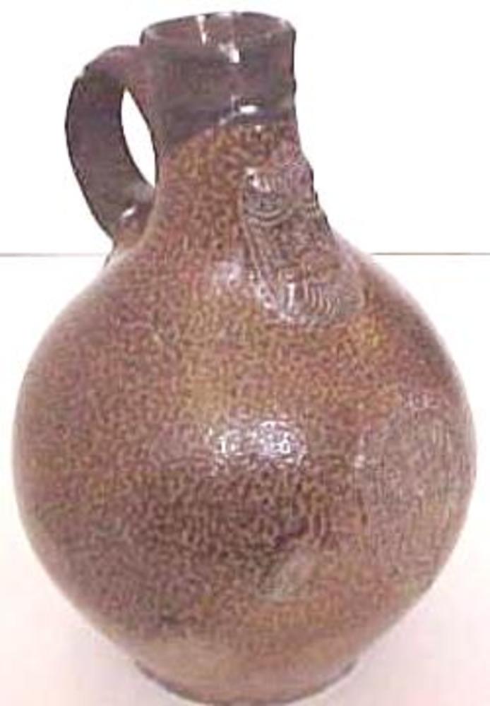 baardmankruik. Buikvormig aardewerk model met korte ...
