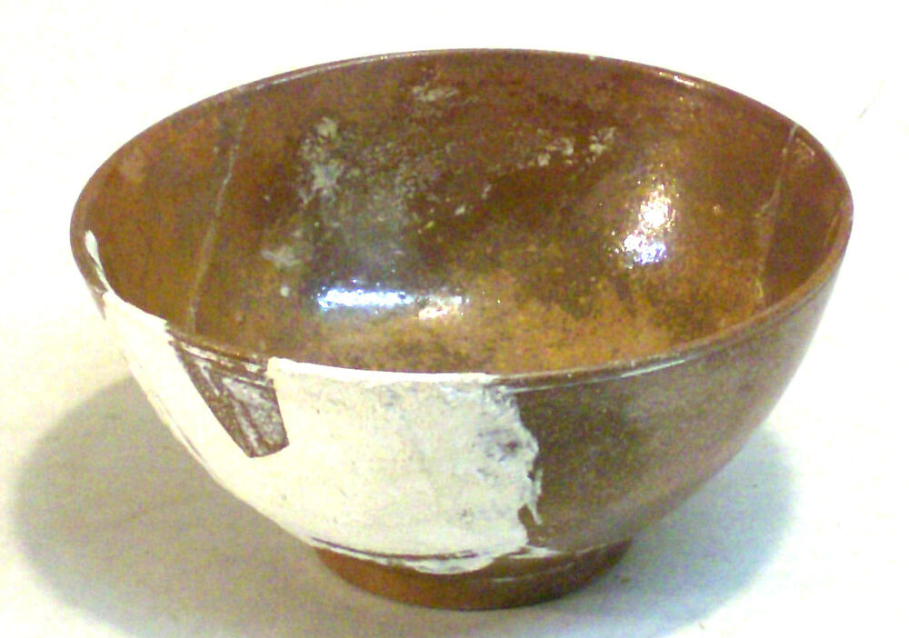 Eetkom van rood geglazuurd aardewerk.