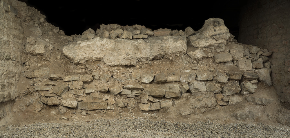 Funderingsmuur van de eerste Romeinse tempel