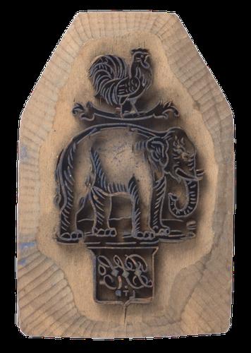 Exportstempel: haan op een olifant