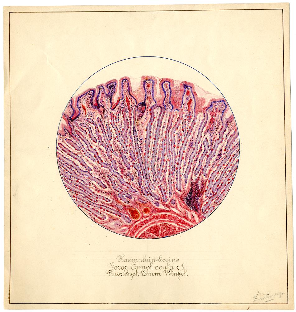 Tekening van darmvlokken door Douwe van der Zweep