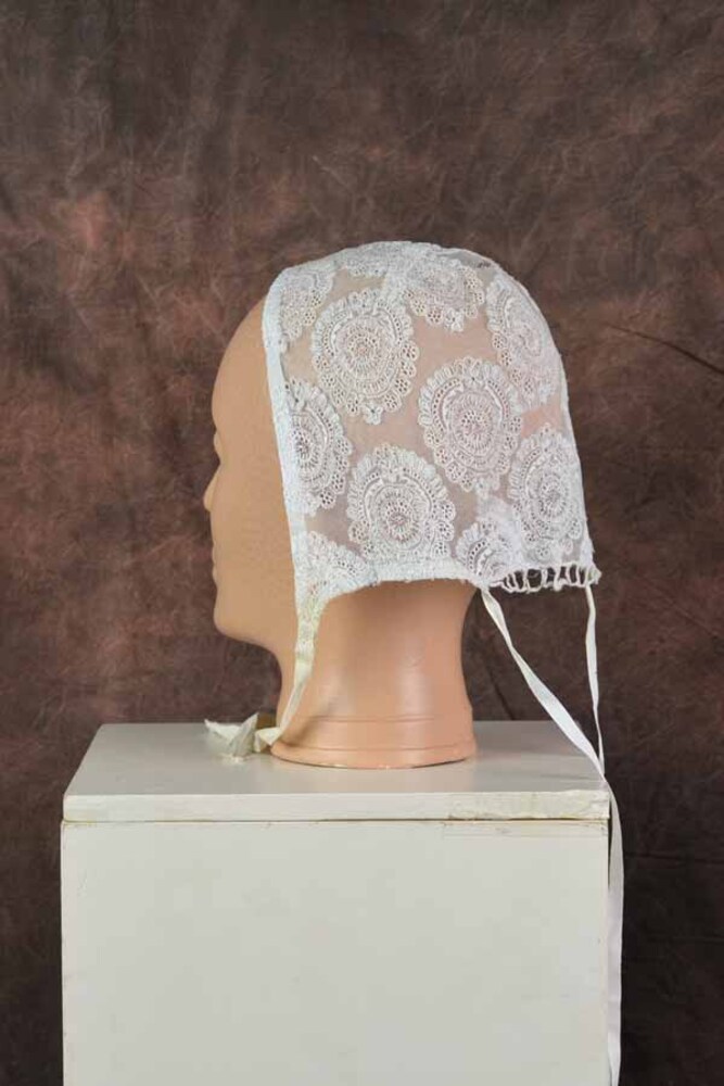 Rouwknipmuts van witte katoen, handgenaaid en in de ...