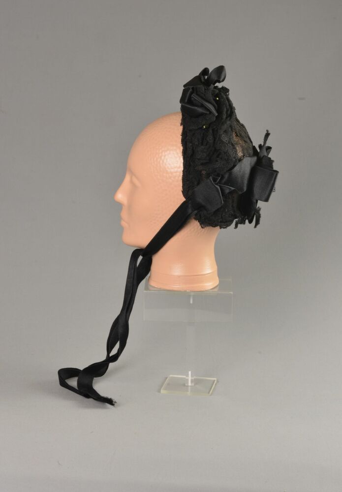 Rouwknipmuts van witte katoen, handgenaaid en in de ...