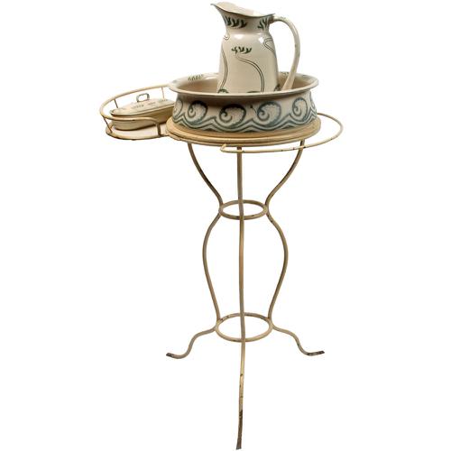 Lampetstel: Wastafel met waskom, lampetkan en kammen...