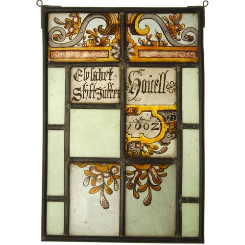 Glas-in-lood raam: "Elysabet Stiftjuffer Houell 1602"