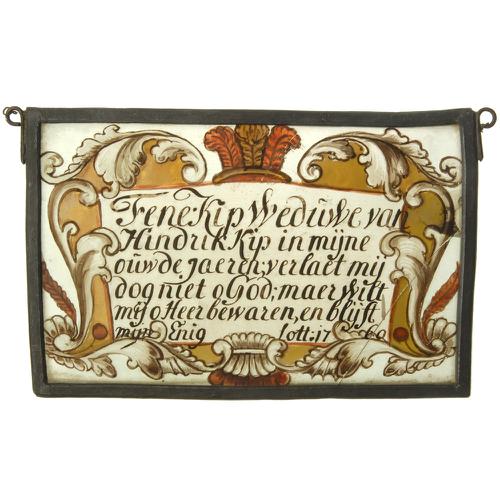 Glas-in-lood raam: "Fene Kip weduwe van Hindrik Kip ...