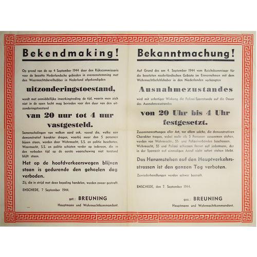 Affiche:"Bekendmaking! Bekanntmachung! Uitzonderings...