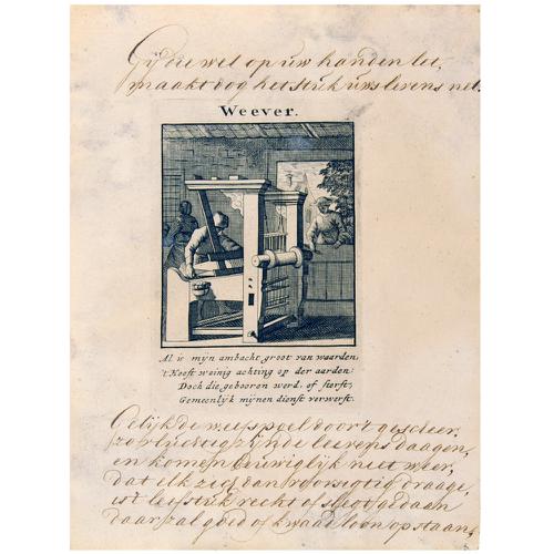 Gravure: een wever op zijn getouw