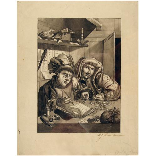 Gewassen tekening: De Geldwisselaars (of: De Muntver...