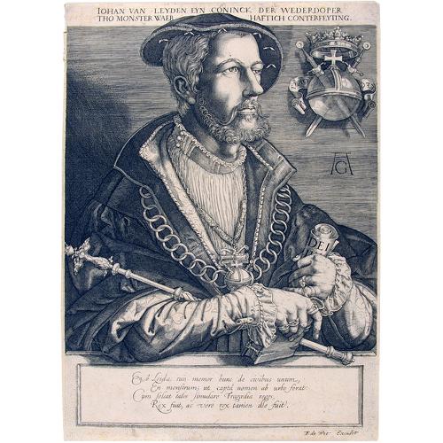 Gravure: Portret van Johan van Leyden, koning der We...