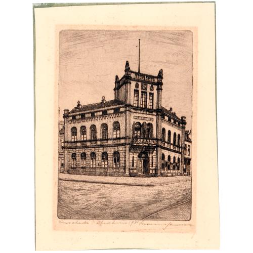 Ets: Het stadhuis aan de bocht in de Langestraat in ...
