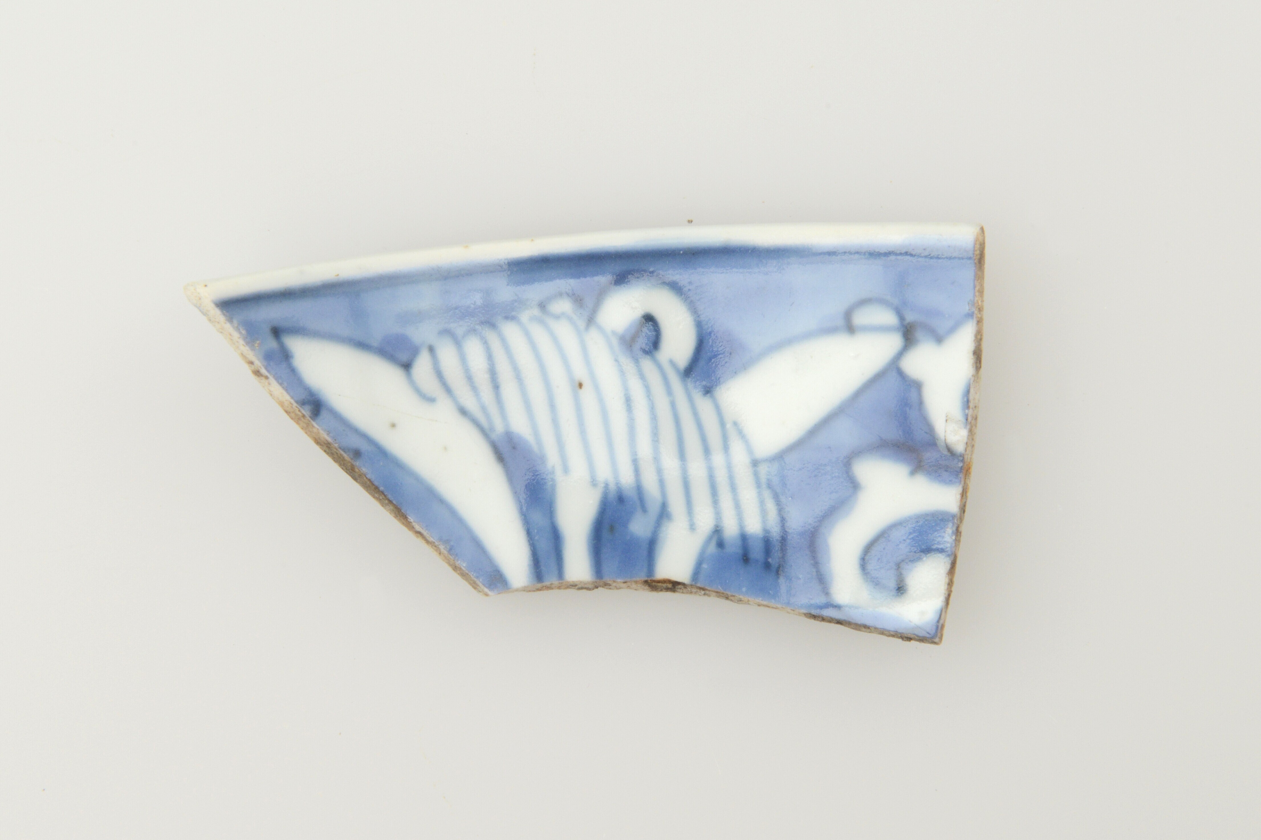 Kop met opschrift, model P met decor De sierkan s'Gr...