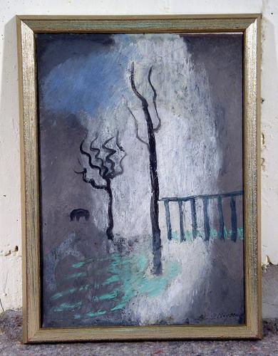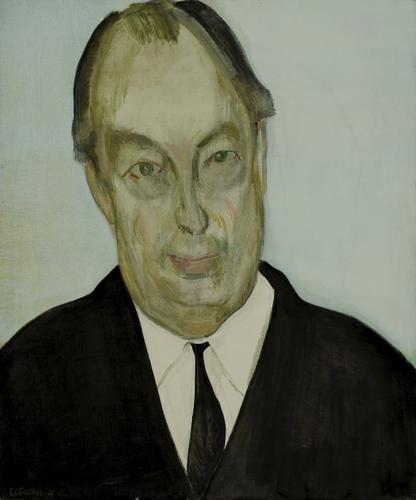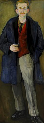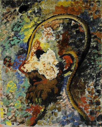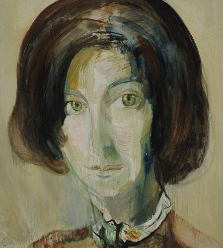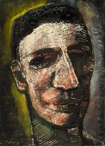 Atelier met kop op de voorgrond, op de achtergrond e...
