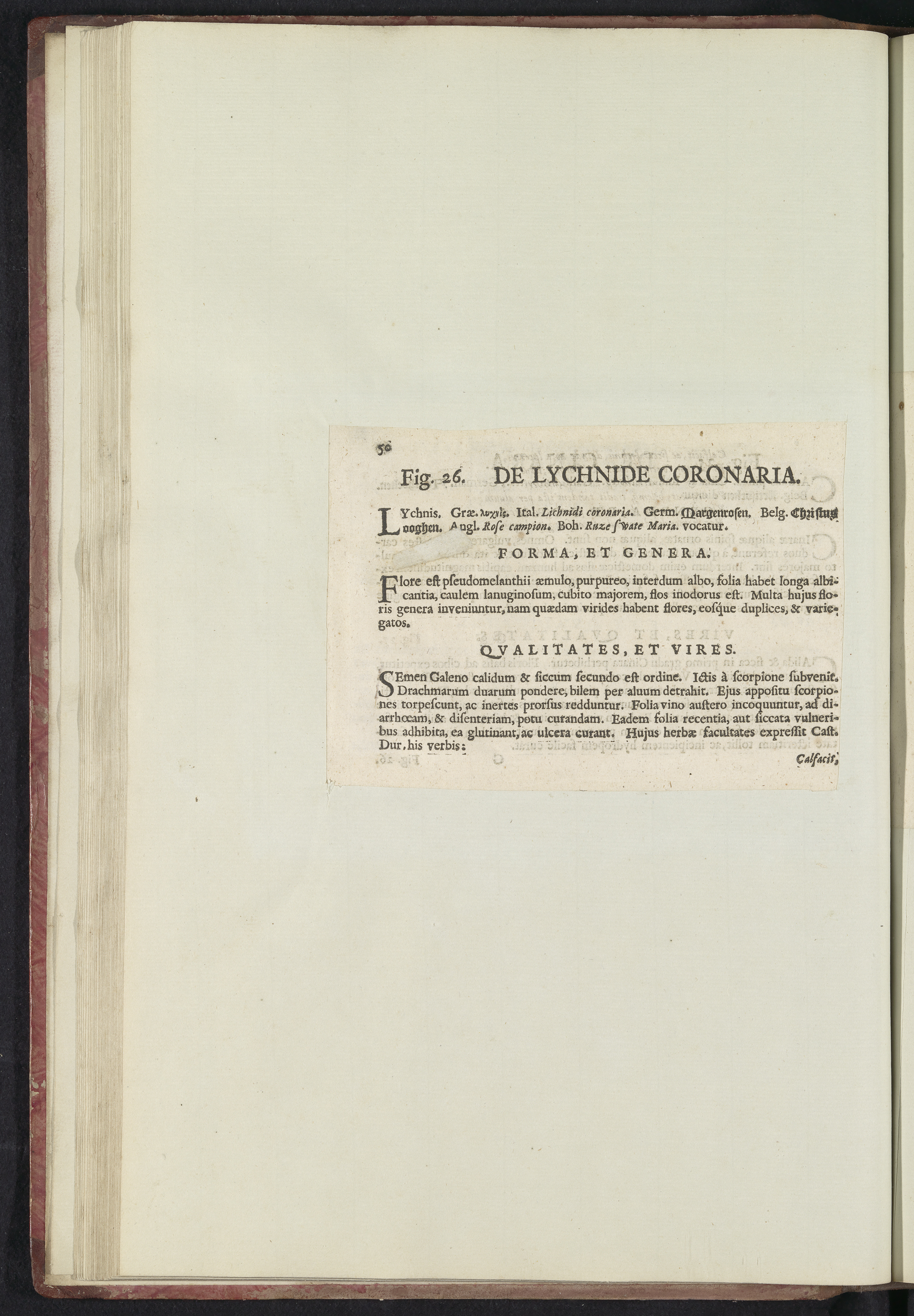 Fig. 26 'De Lychnide Coronaria' in De Boodts herbari...