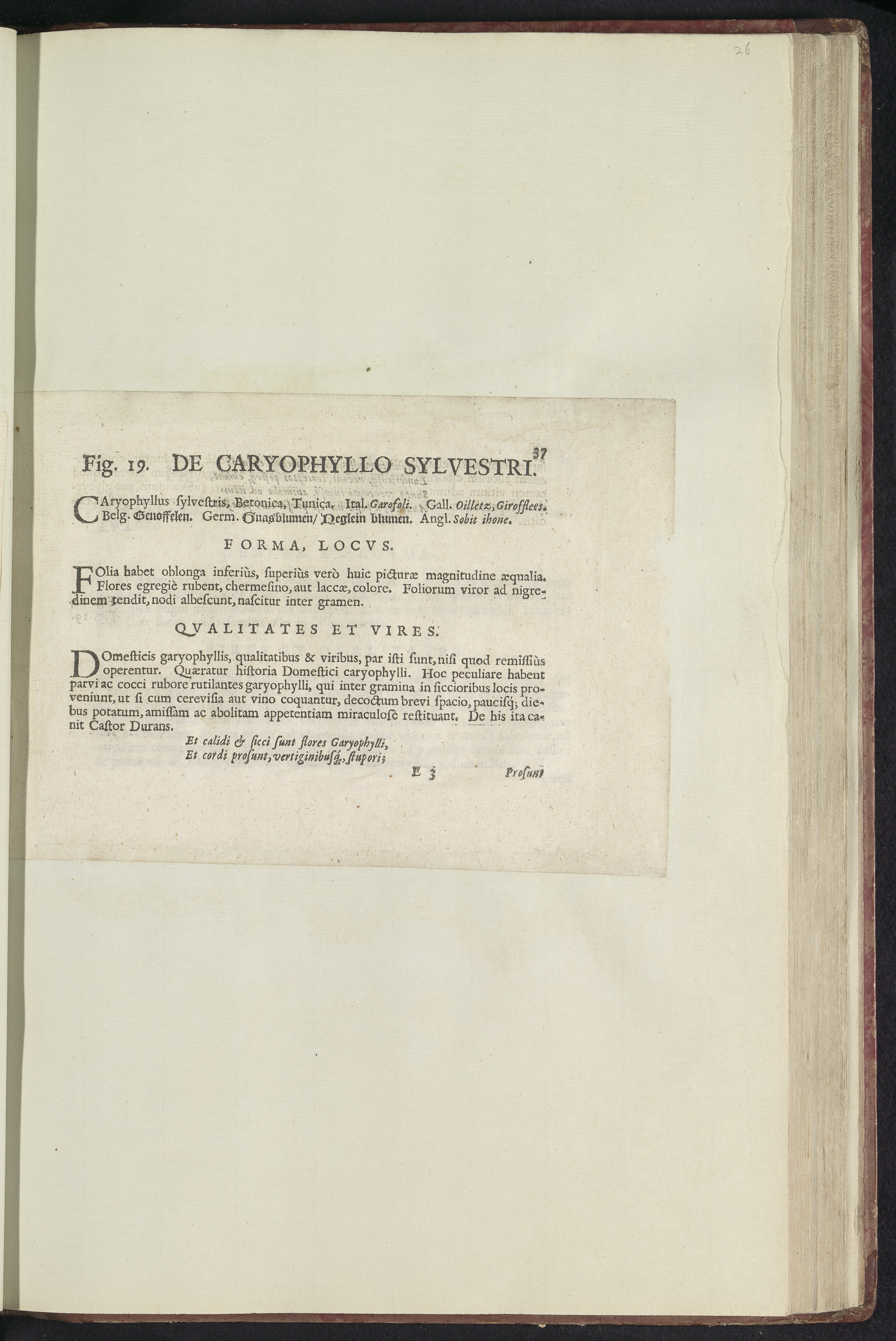 Fig. 19 'De Caryophyllo Sylvestri' in De Boodts herb...