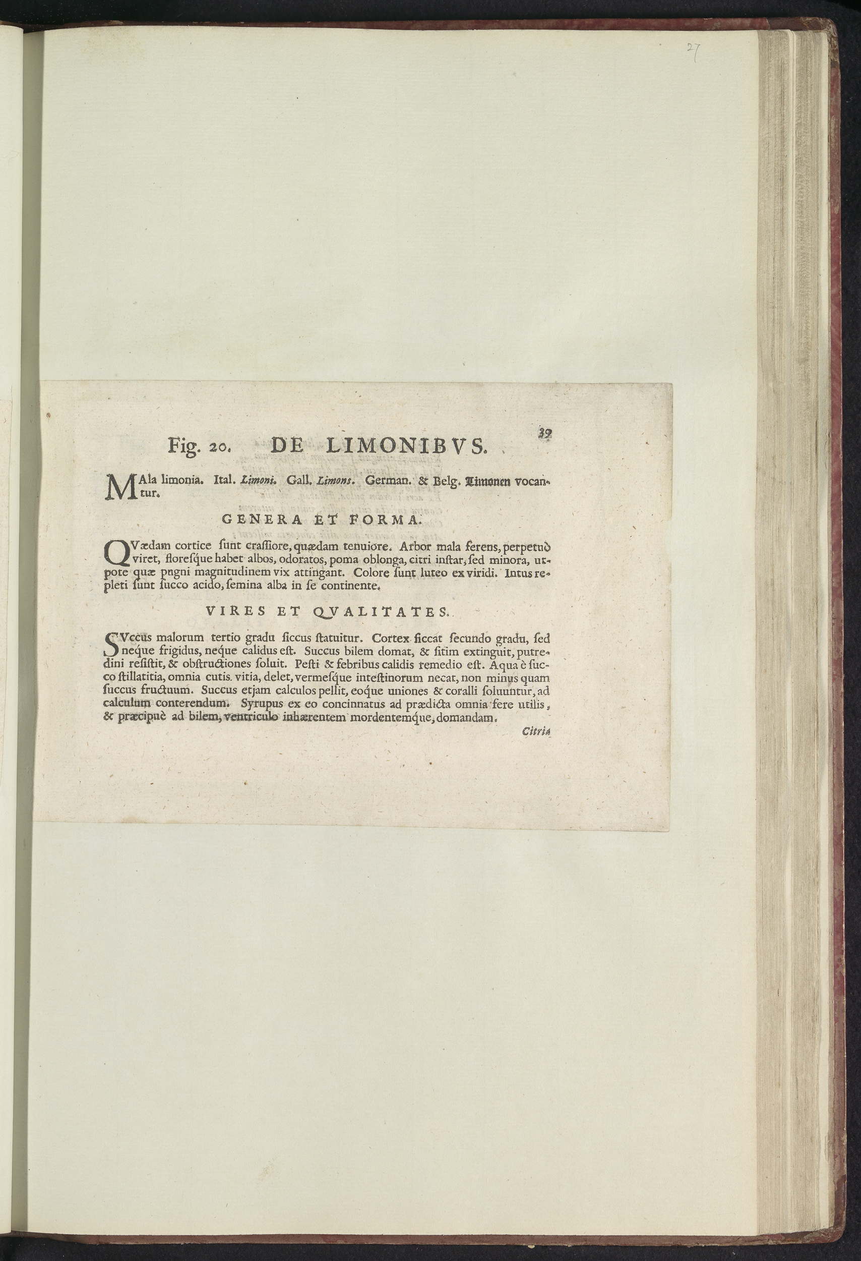 Fig. 20 'De Limonibvs' in De Boodts herbarium van 1640