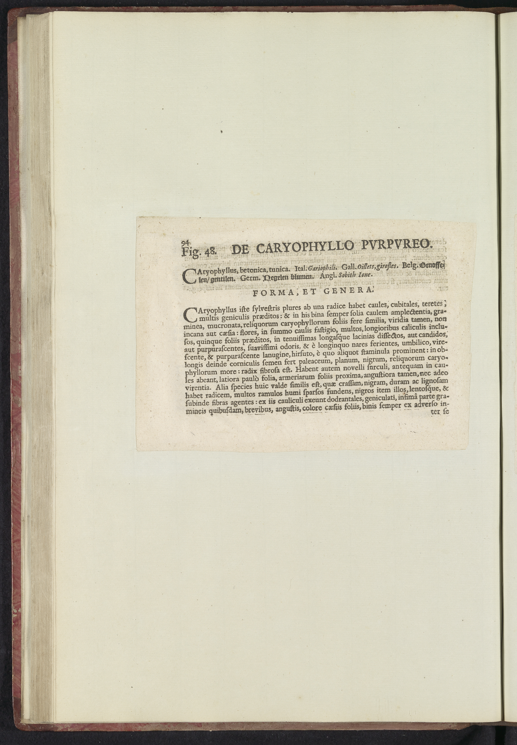Fig. 48 'De Caryophyllo Pvrpvreo' in De Boodts herba...