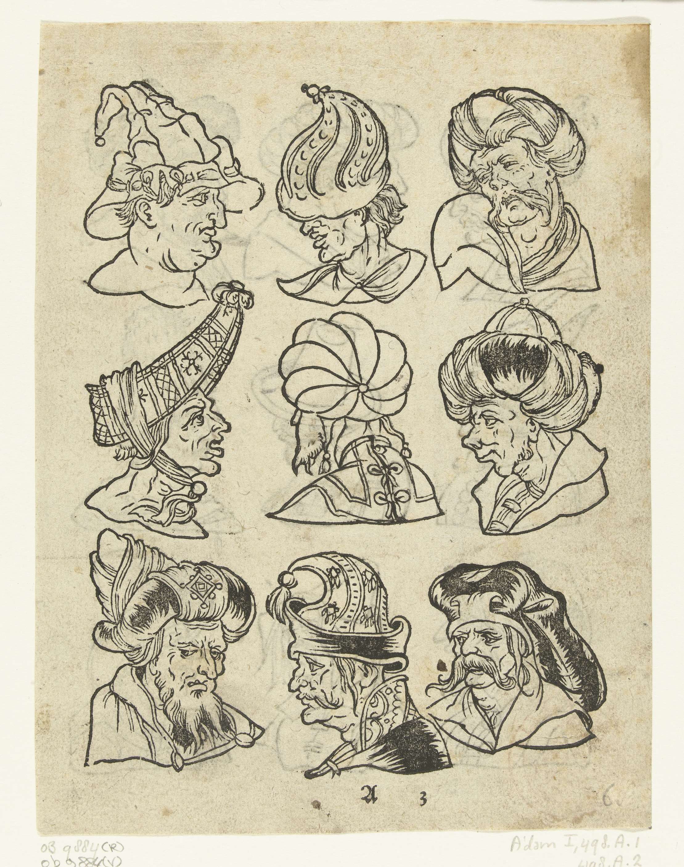 Negen mannenhoofden met verschillende soorten hoofdb...