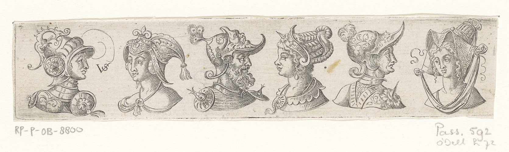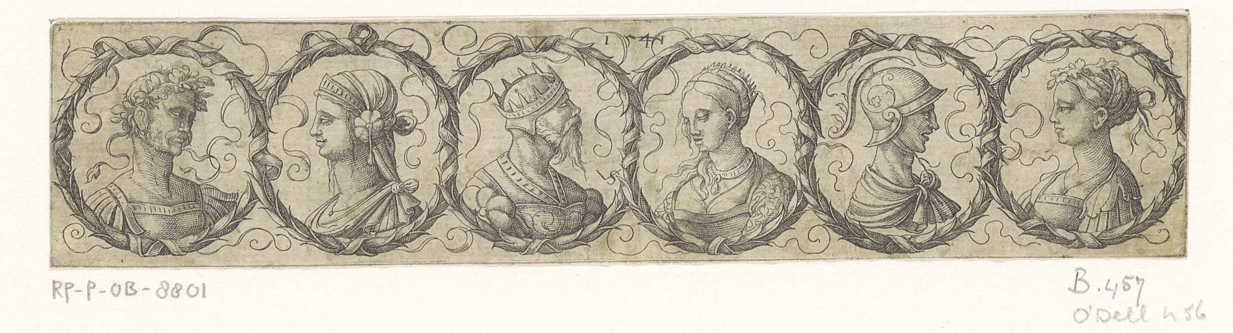 Fries met tien mannelijke en vrouwelijke bustes bove...
