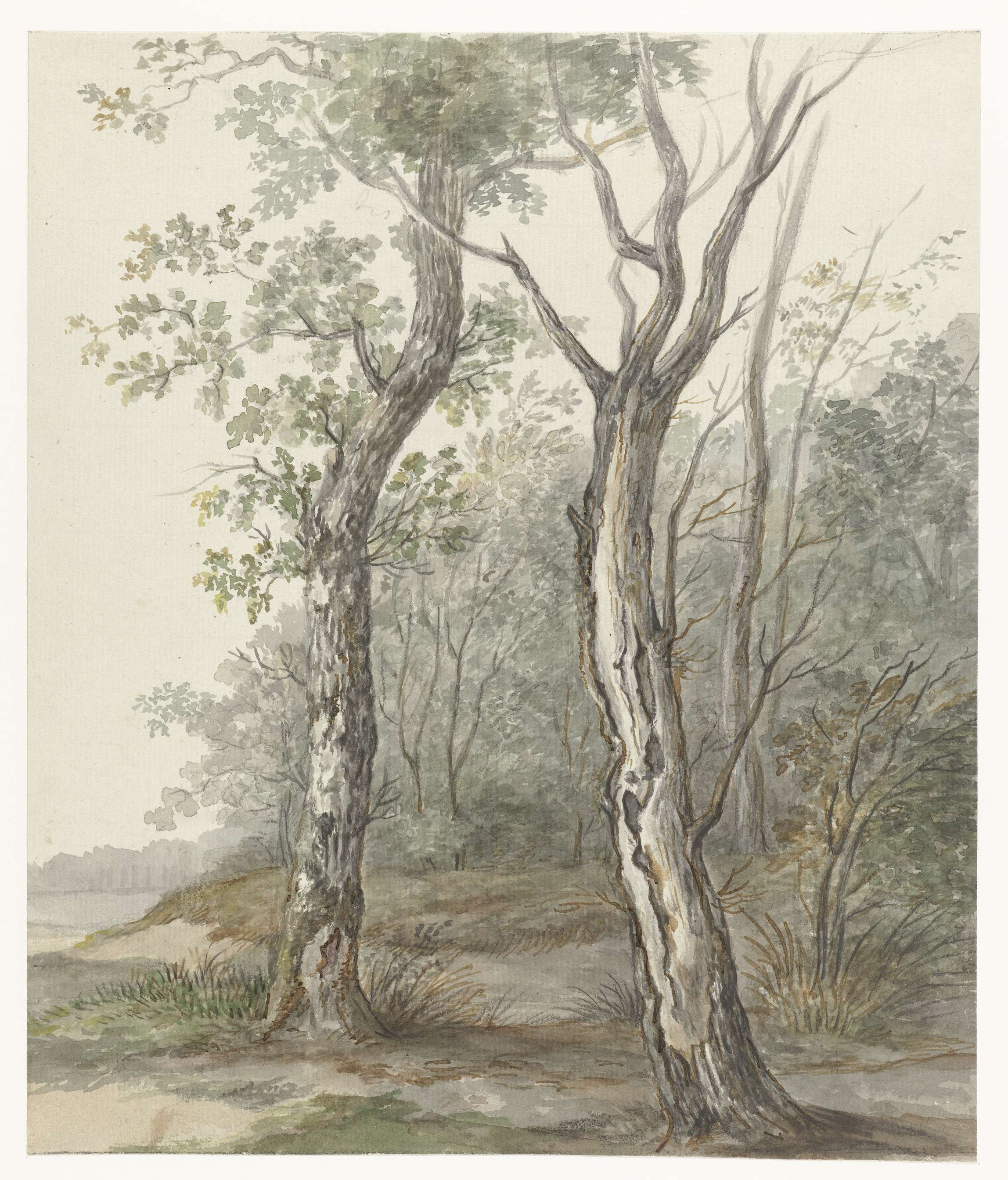 Kust met dorp en kerktoren (Scheveningen?), linksvoo...