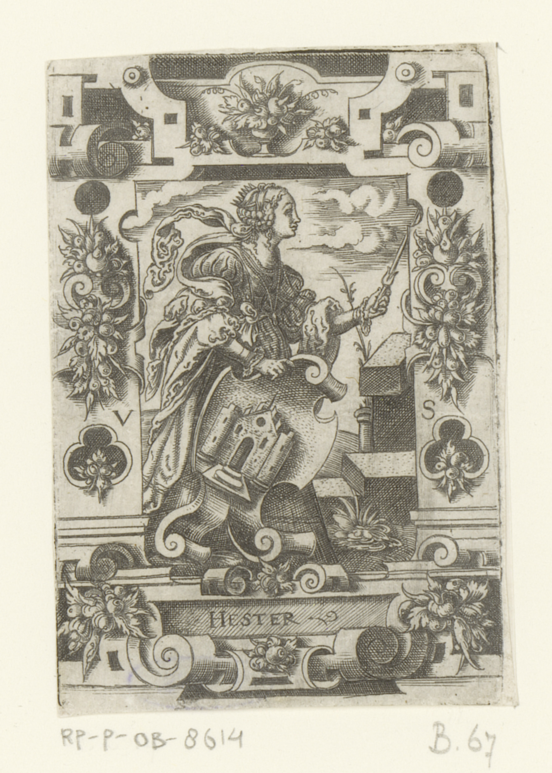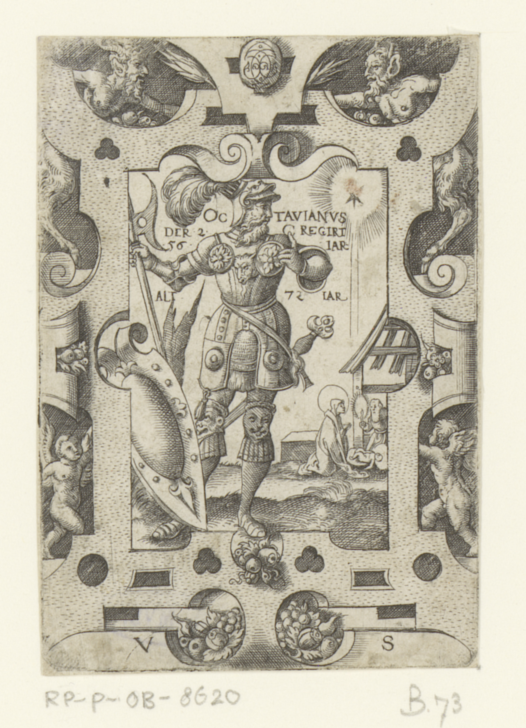Judas de Makkabeër met wapenschild in rolwerk omlijs...