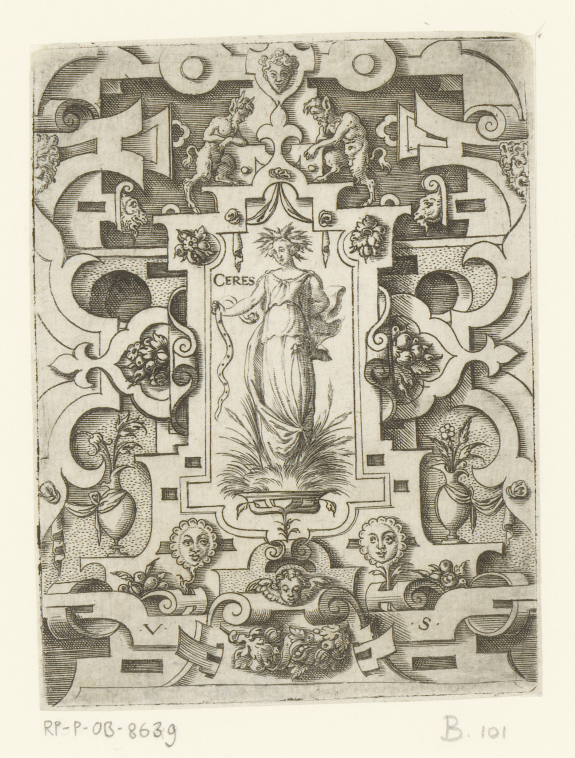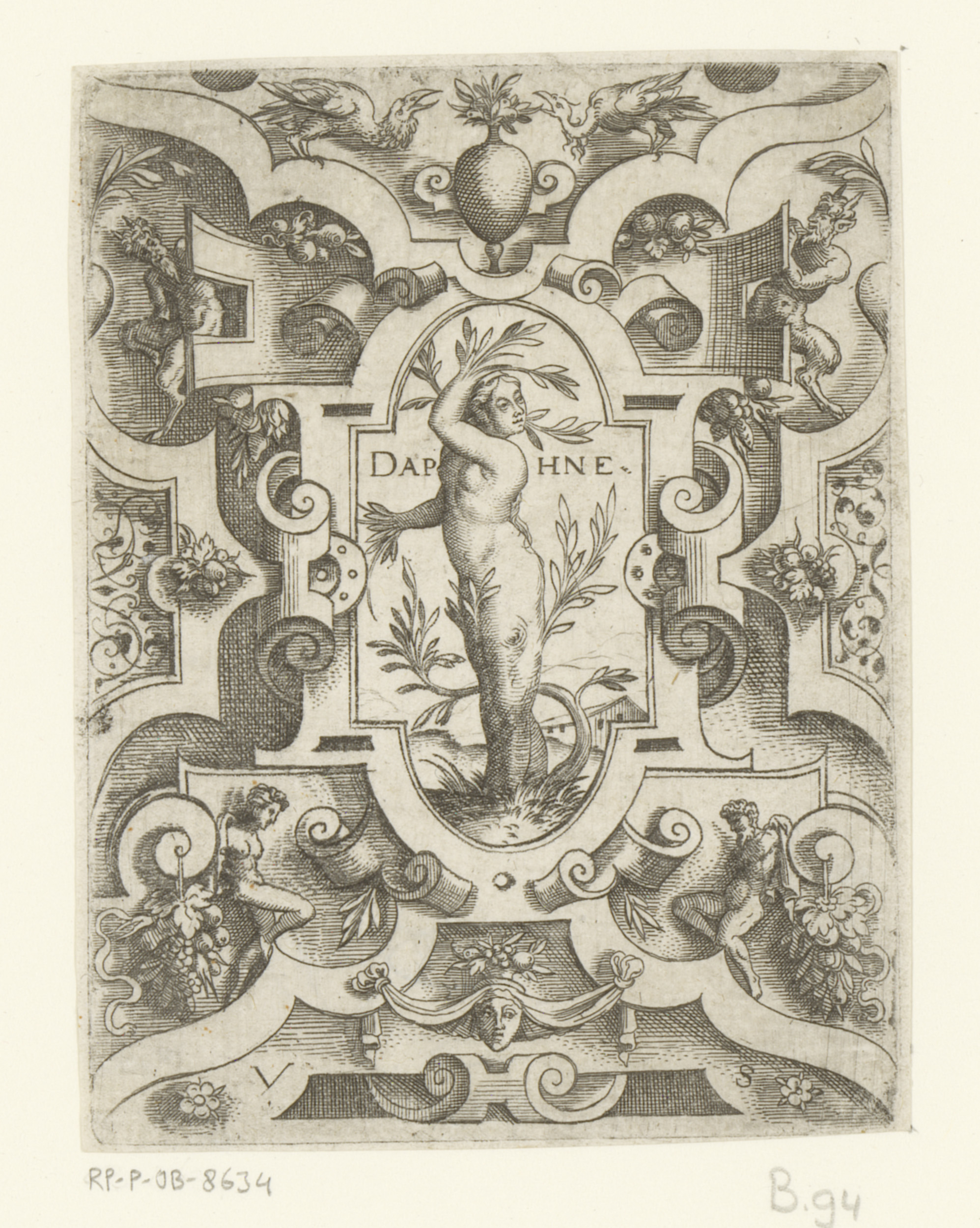 Fries met drie bustes van vrouwen omgeven door gebla...