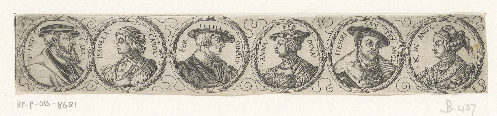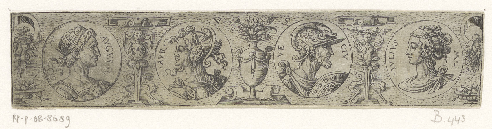 Fries met zes bustes in lauwerkransen