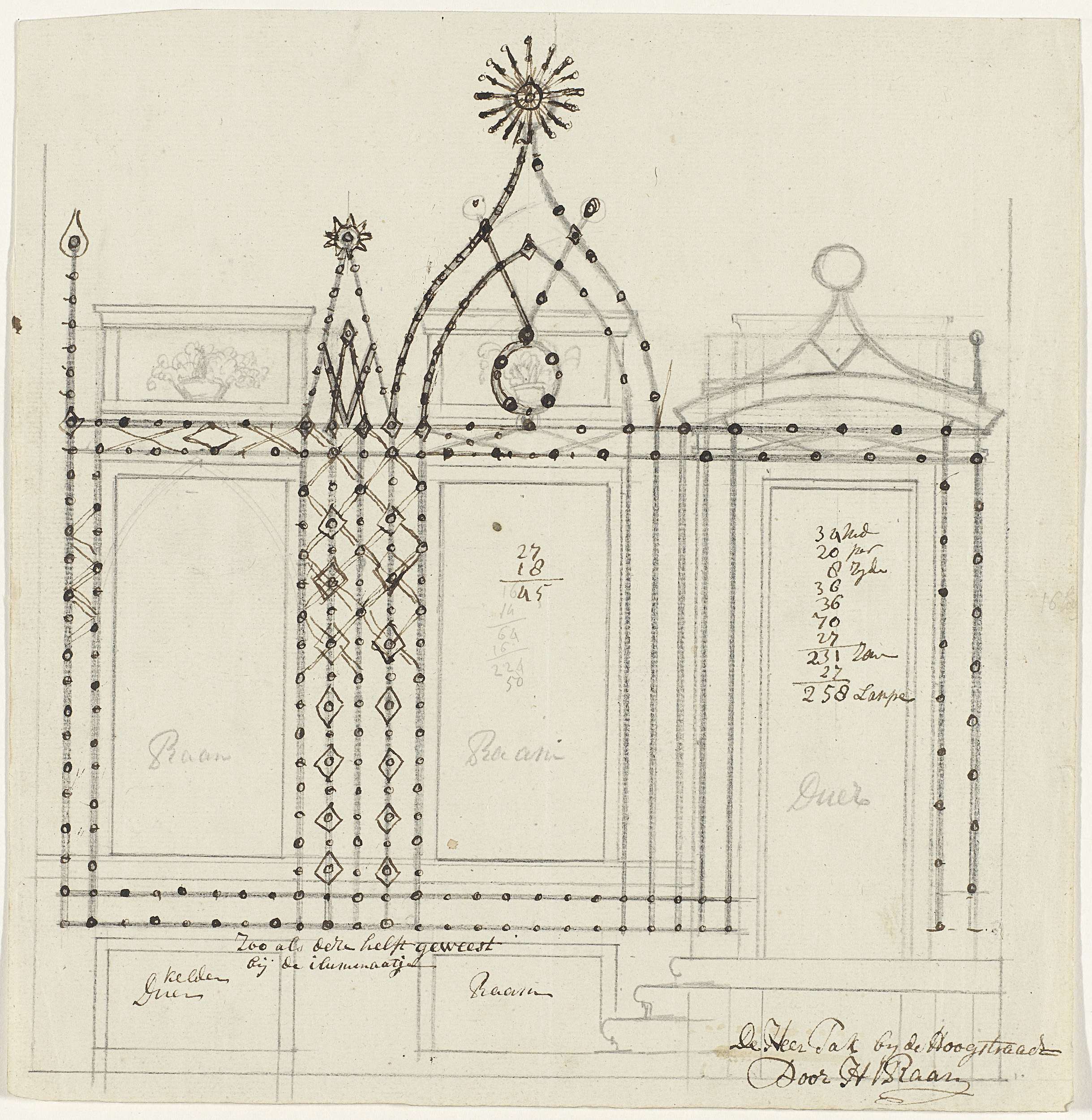Ontwerp voor illuminatie van een huis te Amsterdam, ...
