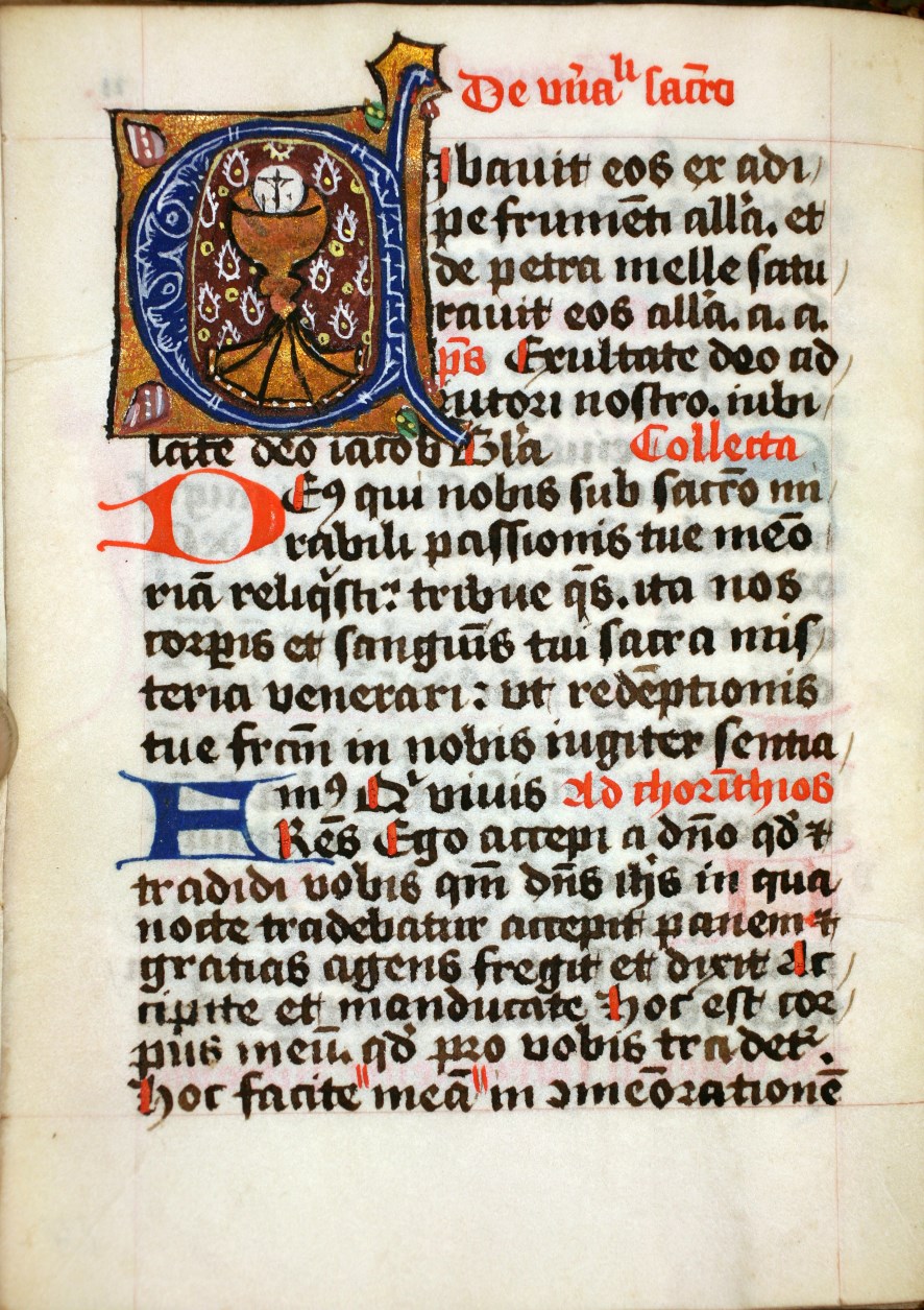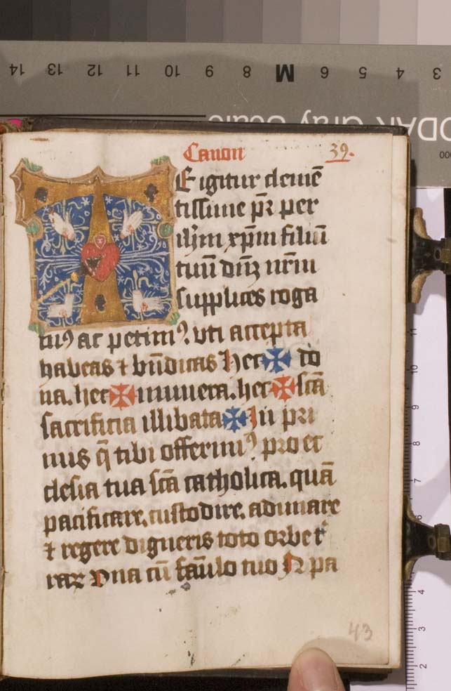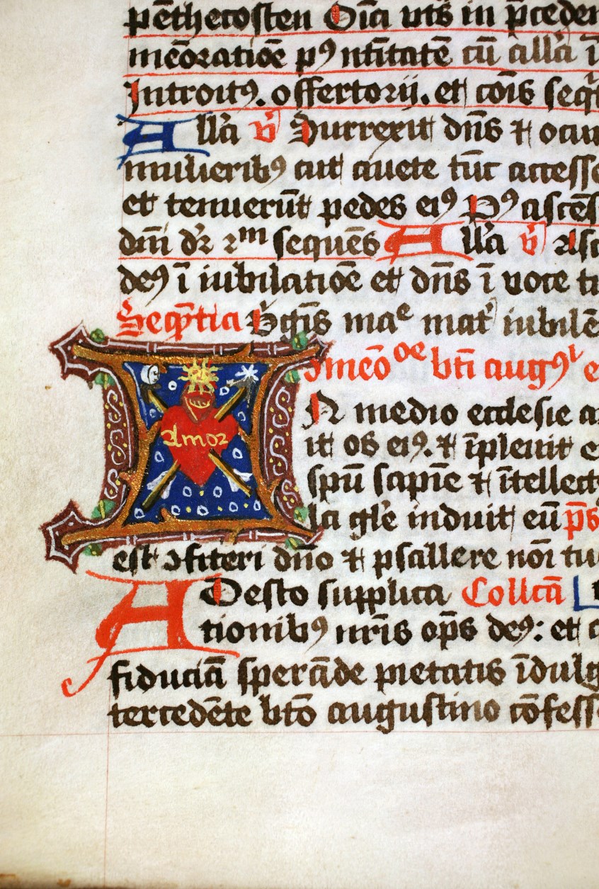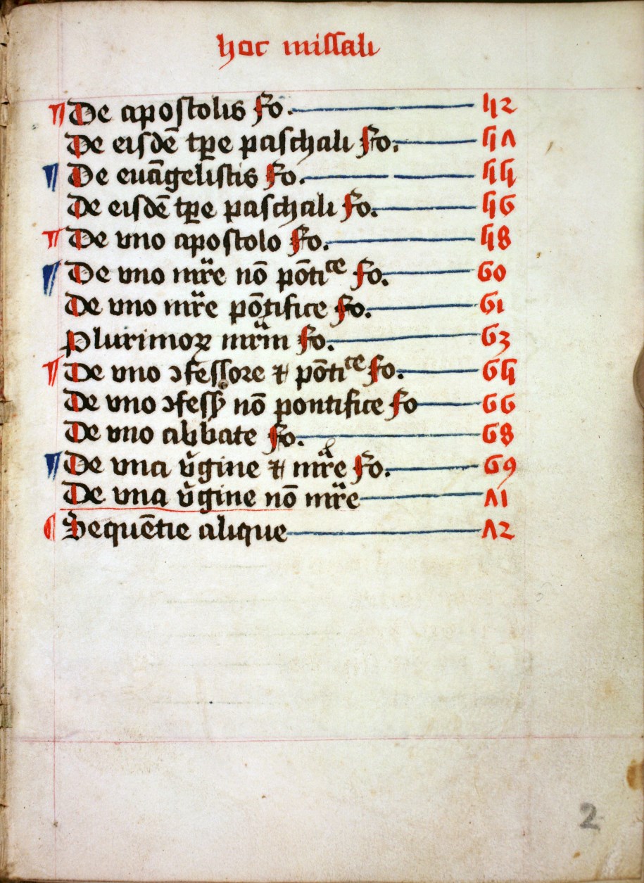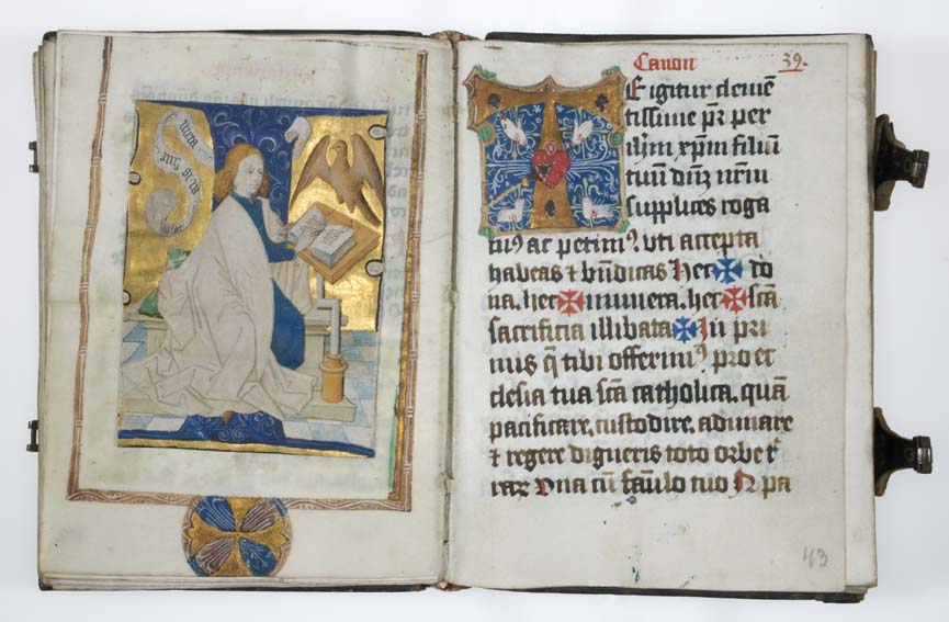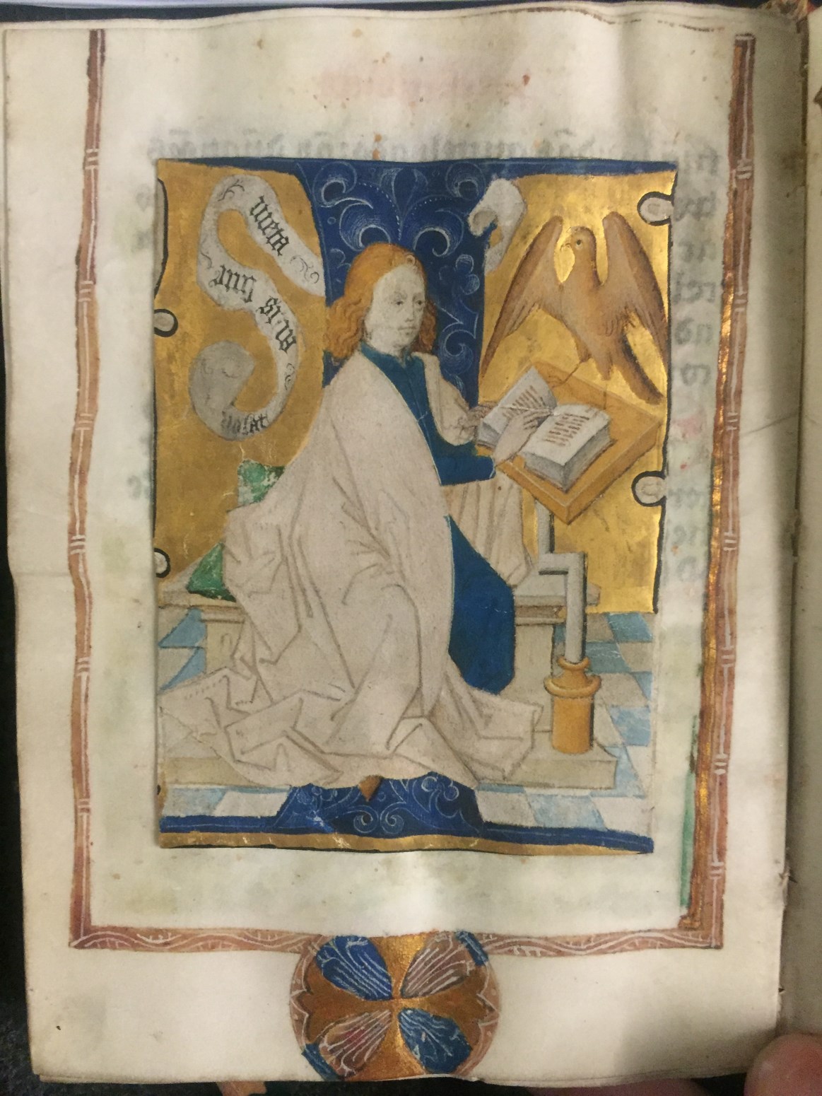 Dit kleine missaaltje is een eenvoudig geschreven boekje, dat gemakkelijk meegenomen kon worden door priesters op reis. Het bevat een aantal votiefmissen, gevolgd door het Gewone der Mis, de Preparaties, de Canon en het Gemeenschappelijke der Heiligen. Opvallend is het handschrift, omdat het bij de lezing uit het Evangelie van Johannes een miniatuur van deze ...