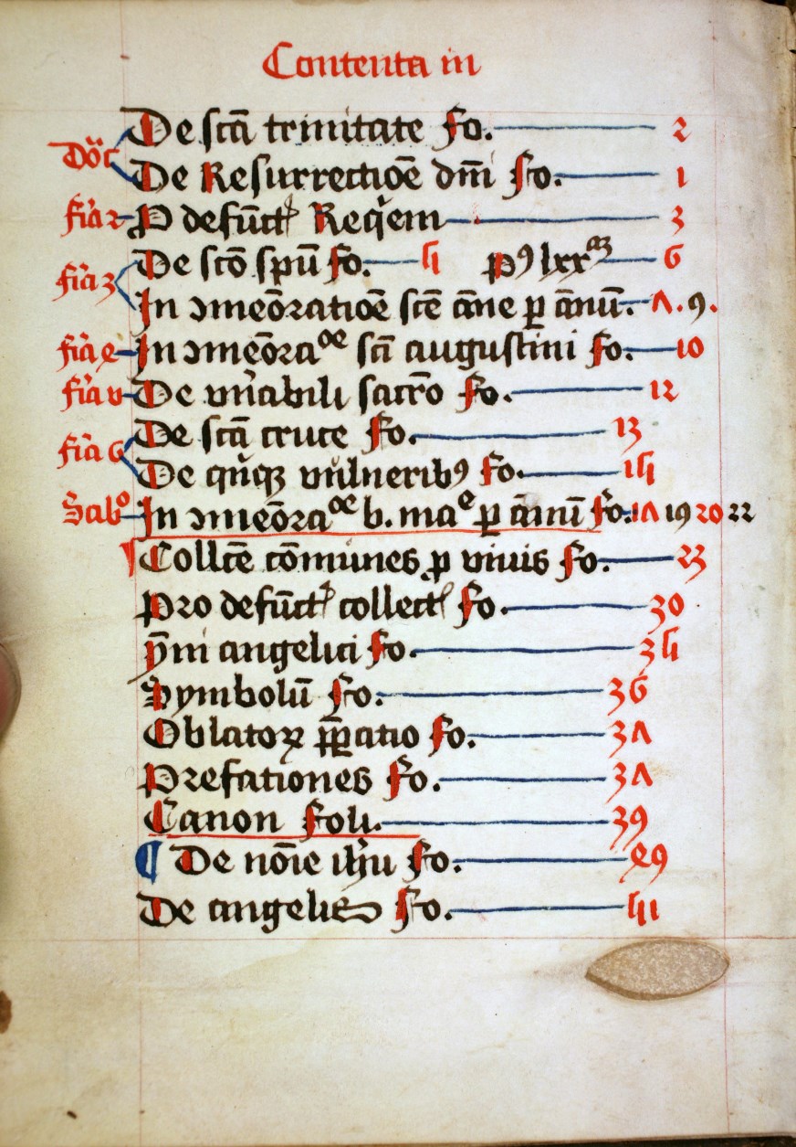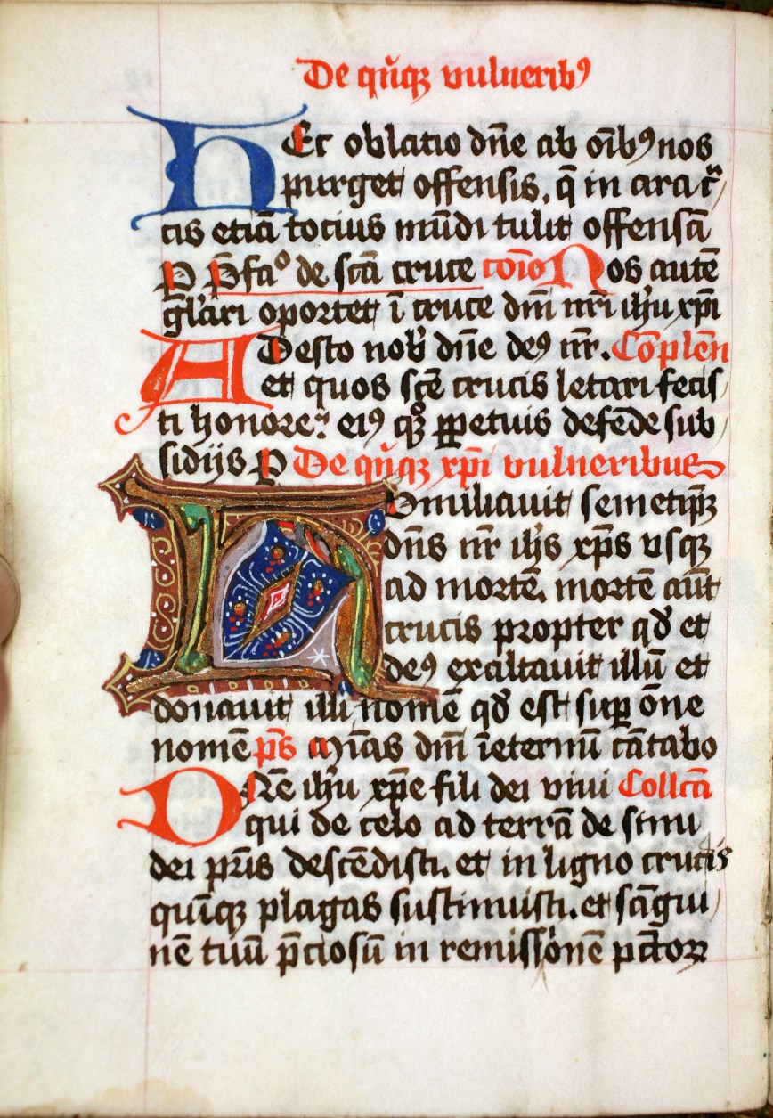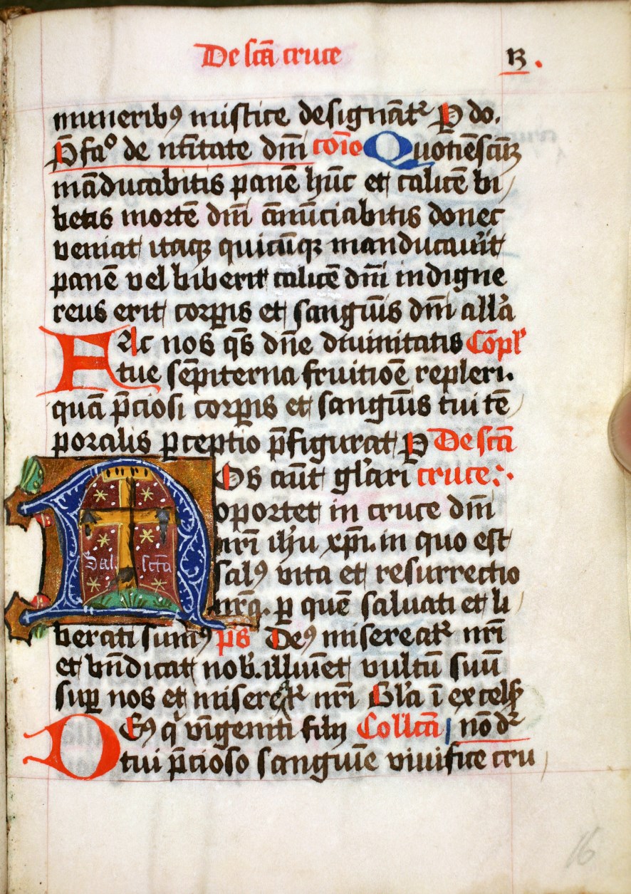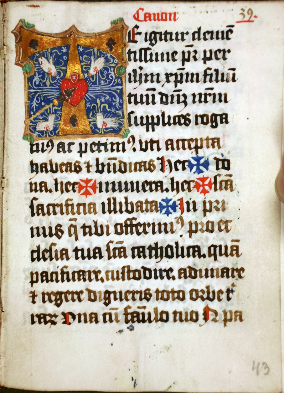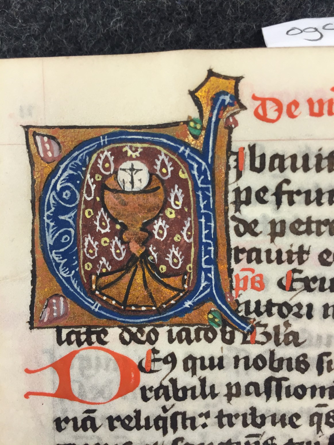 Dit kleine missaaltje is een eenvoudig geschreven boekje, dat gemakkelijk meegenomen kon worden door priesters op reis. Het bevat een aantal votiefmissen, gevolgd door het Gewone der Mis, de Preparaties, de Canon en het Gemeenschappelijke der Heiligen. Opvallend is het handschrift, omdat het bij de lezing uit het Evangelie van Johannes een miniatuur van deze ...
