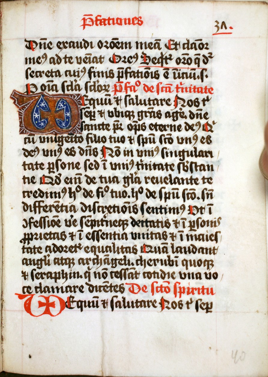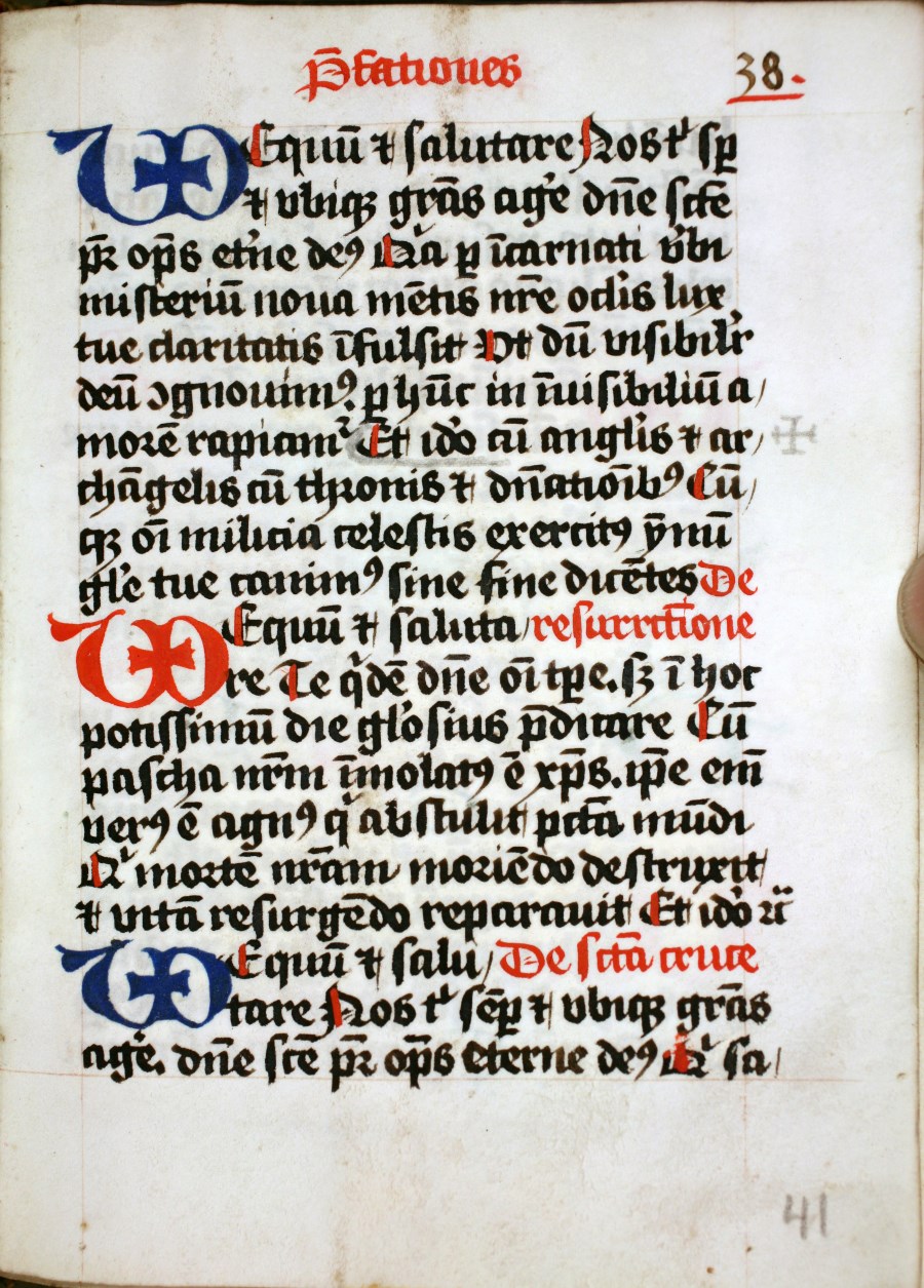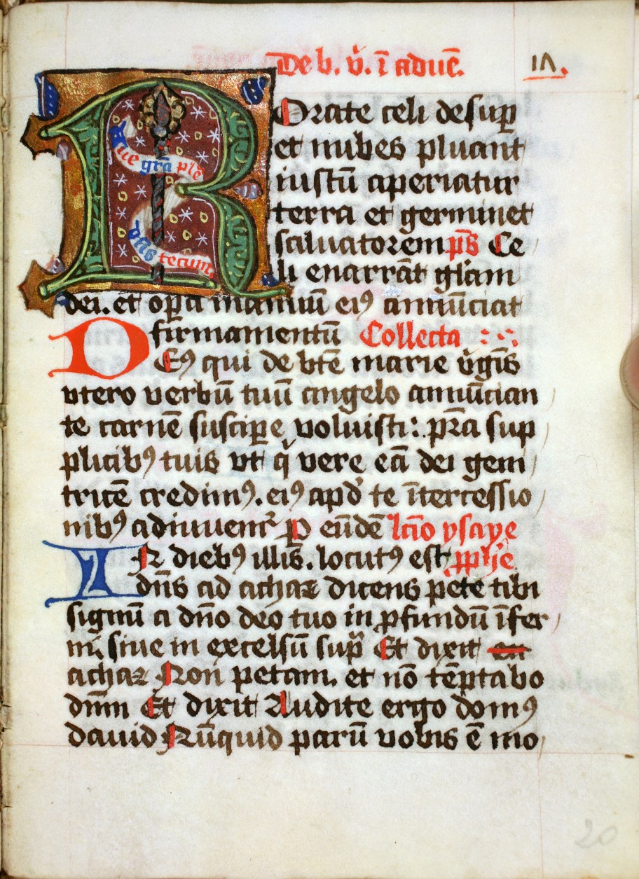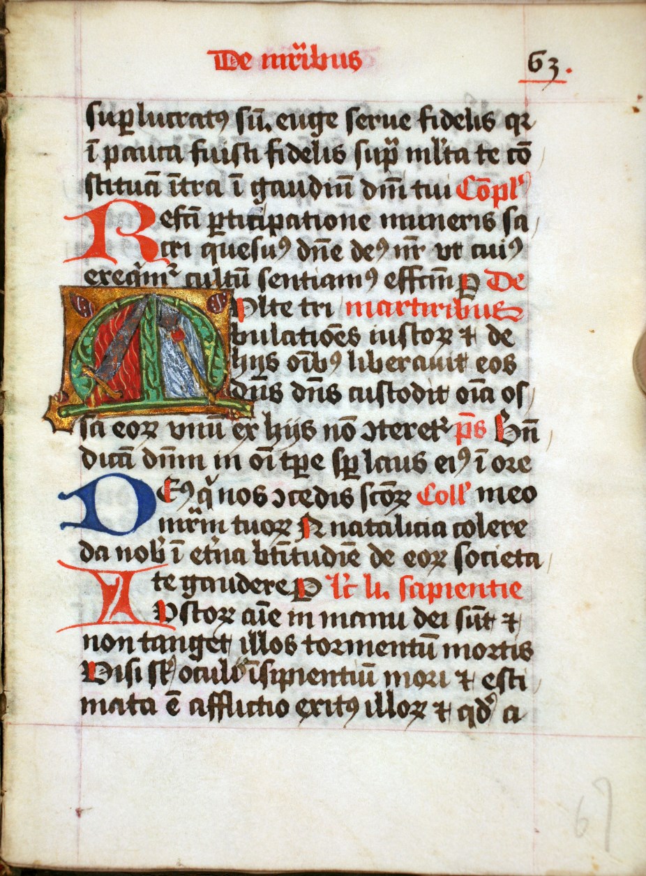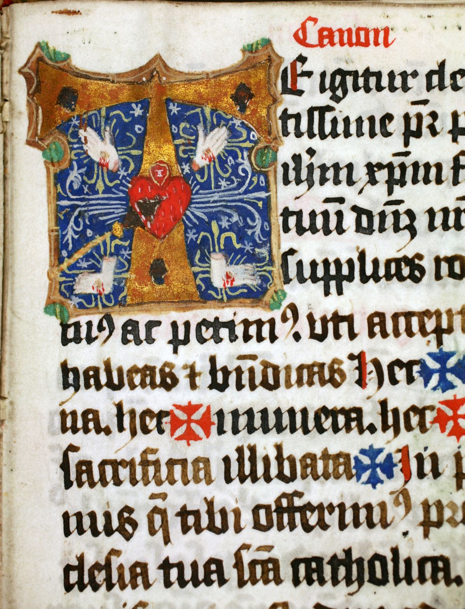 Dit kleine missaaltje is een eenvoudig geschreven boekje, dat gemakkelijk meegenomen kon worden door priesters op reis. Het bevat een aantal votiefmissen, gevolgd door het Gewone der Mis, de Preparaties, de Canon en het Gemeenschappelijke der Heiligen. Opvallend is het handschrift, omdat het bij de lezing uit het Evangelie van Johannes een miniatuur van deze ...