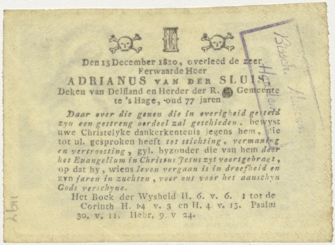 Kroning van Maria, kz. Religieus;Bid voor ziel Adrianus van der Sluis (+1820);Deken van Deylana;