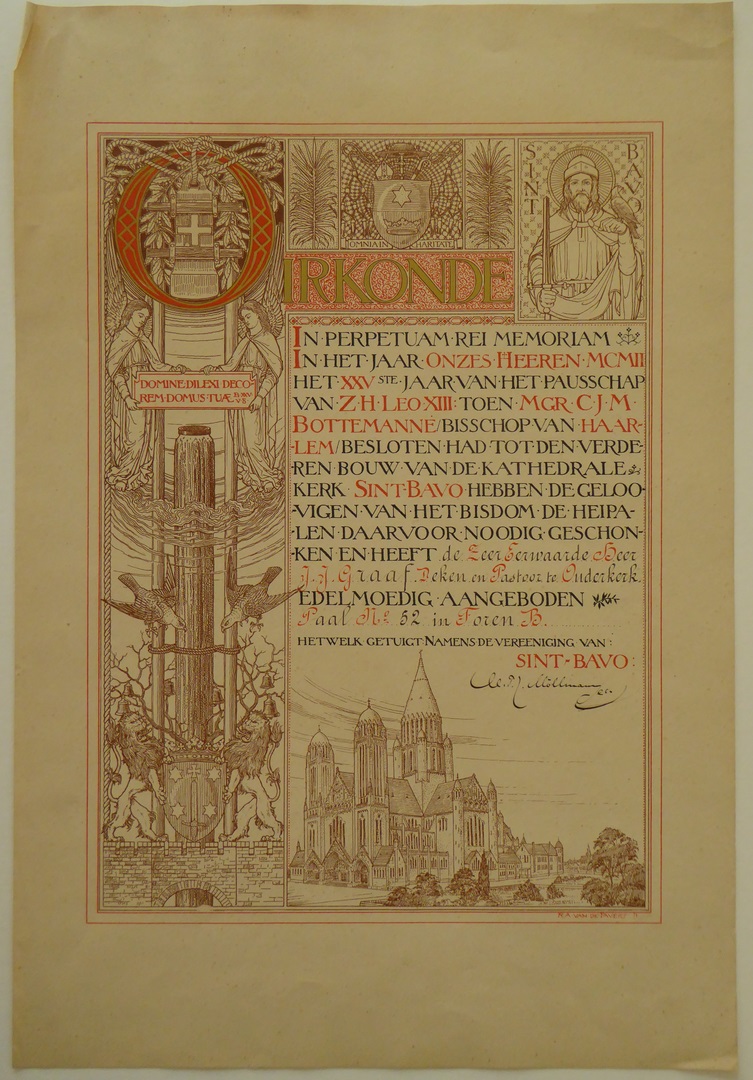 Oorkonde, waarin Jacobus Joannes Graaf, deken en pastoor te Ouderkerk een heipaal geschonken heeft aan St. Bavo