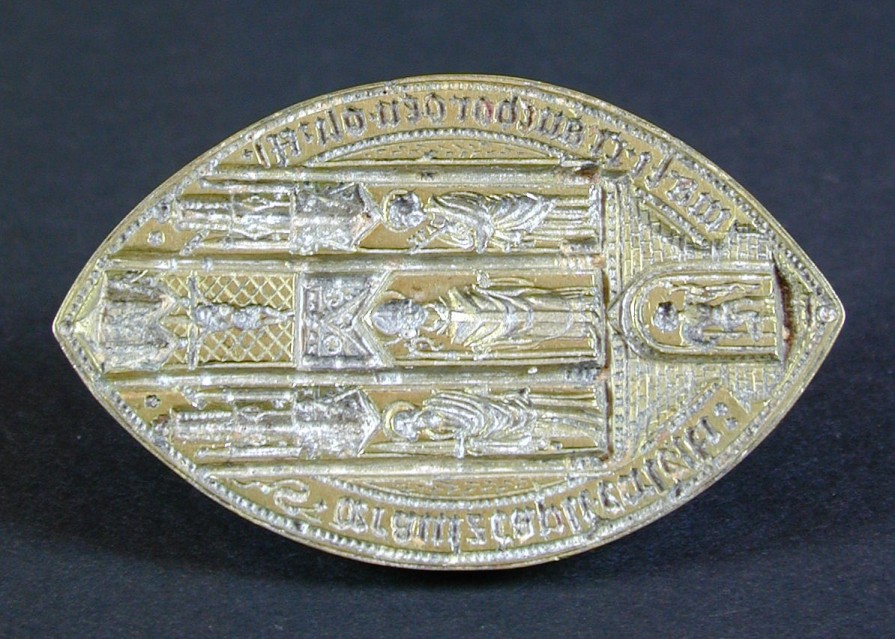 Zegelstempel van deken en kapittel St. Martinuskerk te Kranenburg, met Martinus, enz.