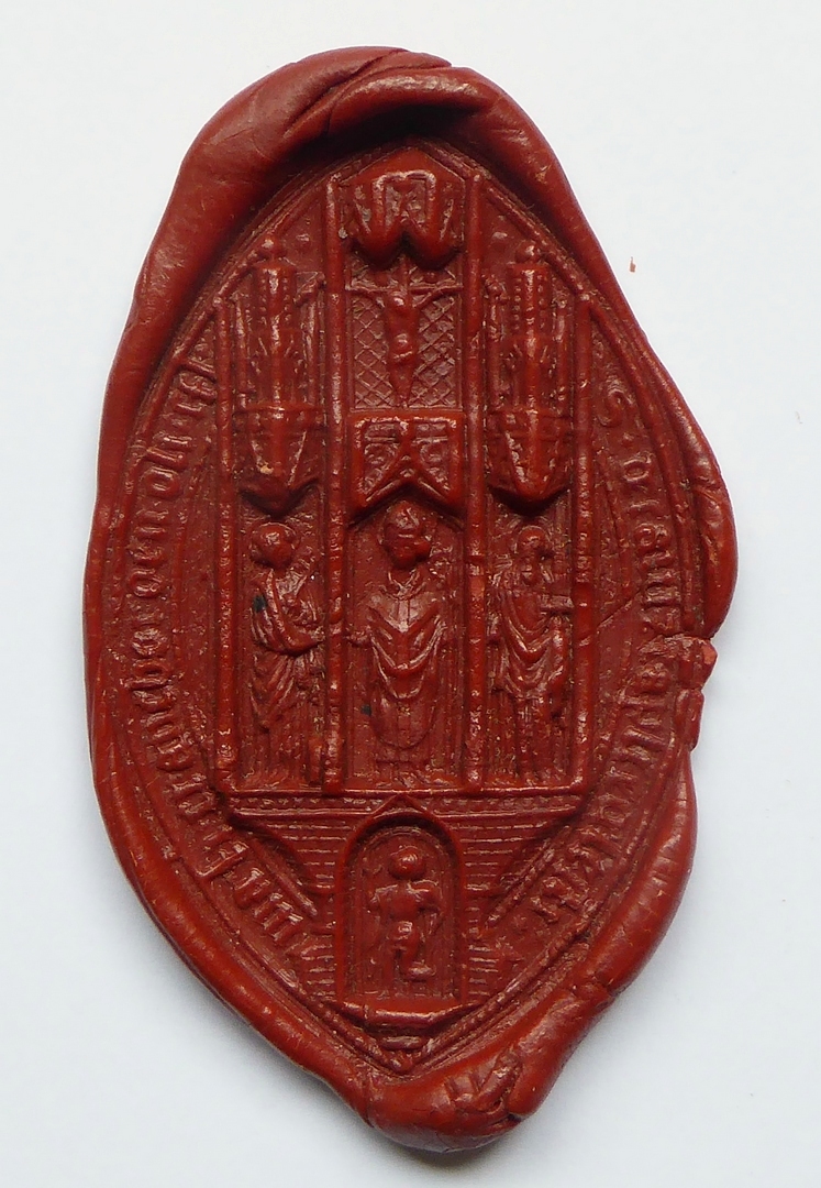 Afdruk van zegelstempel van deken en kapittel St. Martinuskerk te Kranenburg, met Martinus, enz.