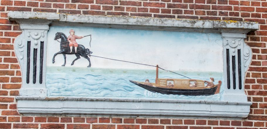 Langwerpige, rechthoekige gevelsteen met voorstelling van een trekschuit