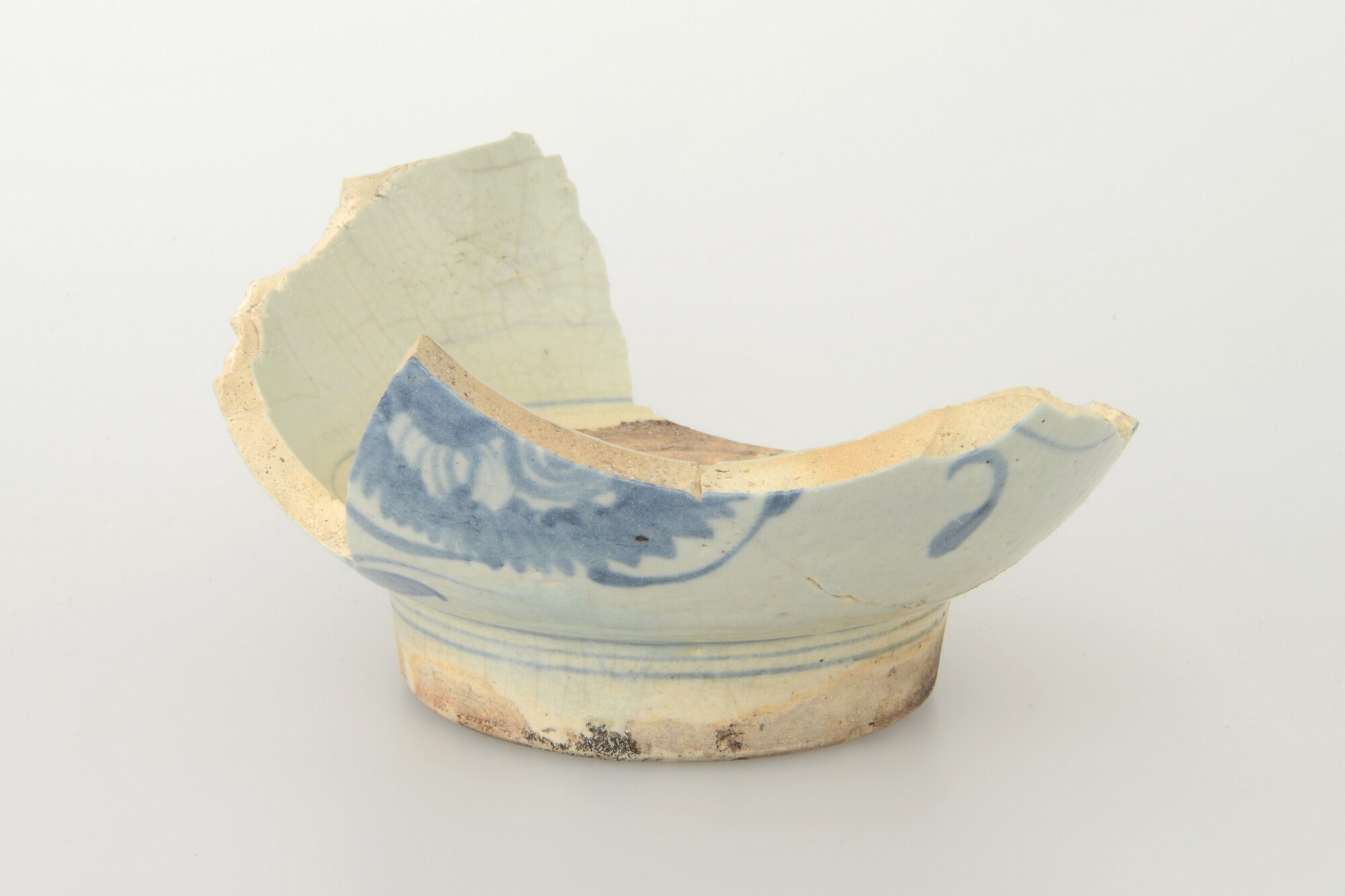 Kom; p-kom-; Aziatisch porselein/Swatow; veldspaatglazuur; grove beschildering in blauw; standring