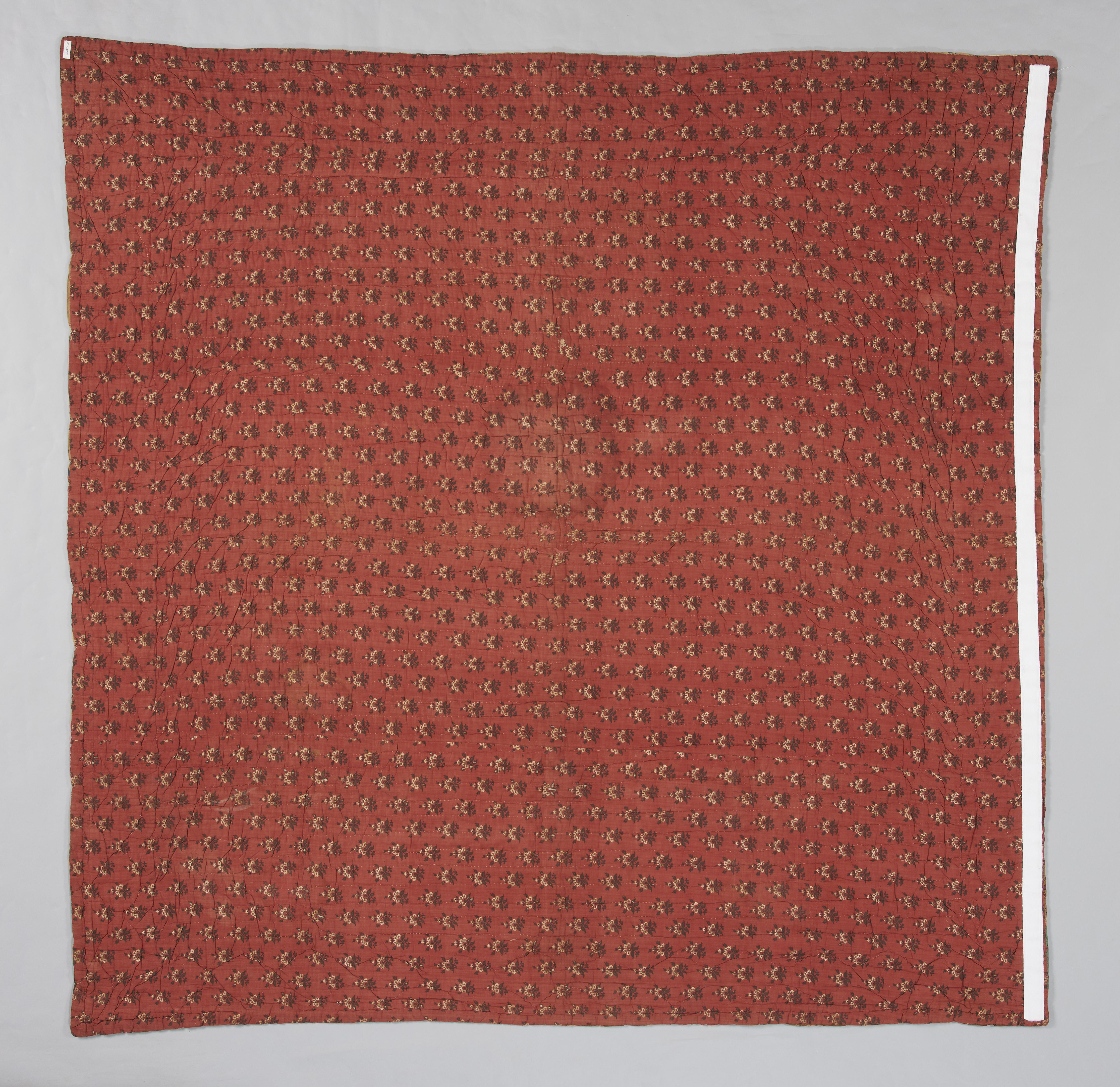 Lappendeken, gemaakt door Annechien Jans Kremer in 1844 voor haar huwelijk. De deken bestaat uit driehoeken van bedrukte katoen, die tot vierkanten van 11 x 11 centimeter zijn genaaid. In het midden staat een grote achtpuntige ster in een vierkant van 45 x 46 centimeter, afwisselend in katoen met een rood of wit fond. In ...