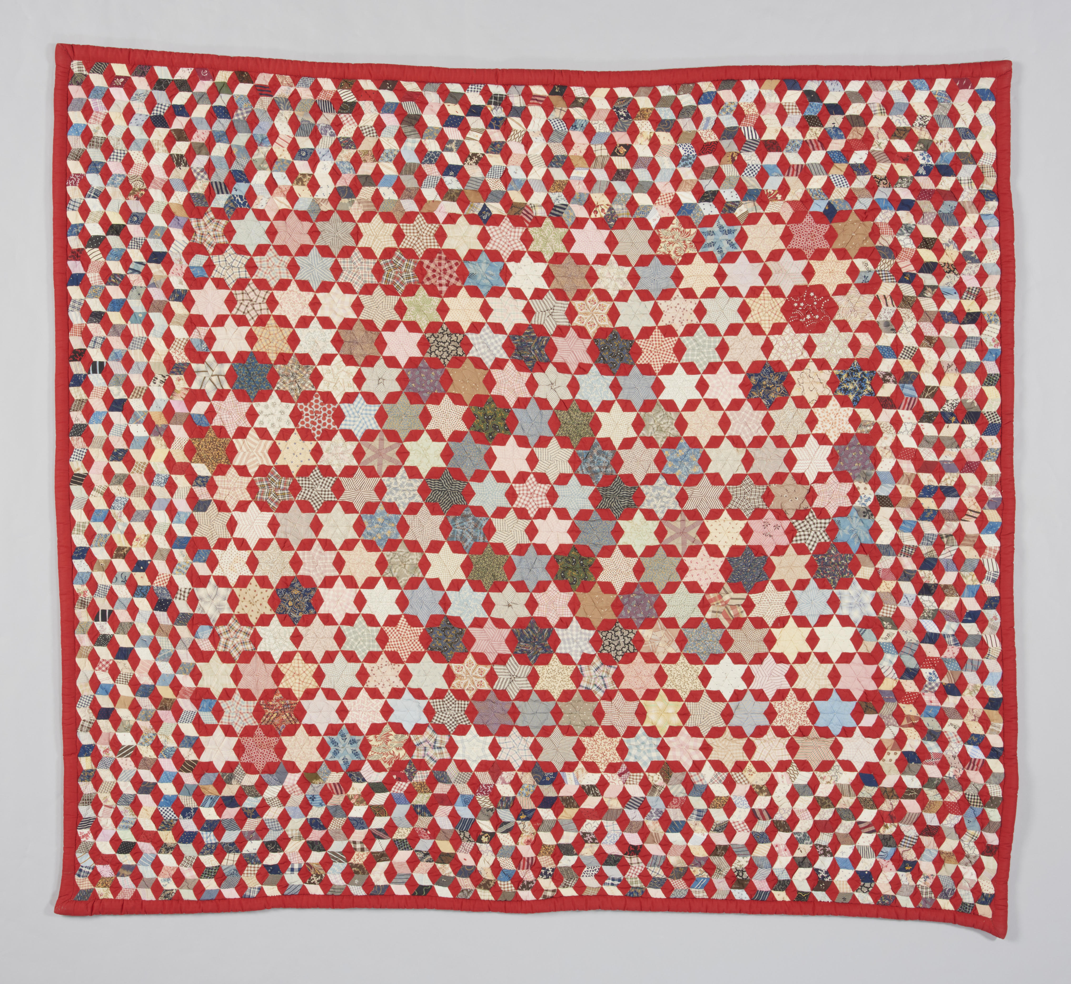 Lappendeken, gemaakt door mevrouw E. van de Stadt uit Zaandam. Ze had deze deken ingestuurd voor de provinciale tentoonstelling van de Vereniging ‘Huisvlijt’, gehouden van 18 tot 26 juli 1908 in Zaandam. Ze kreeg 22 punten toegekend en won de vierde prijs. Bij deze prijs hoorde een diploma en een bronzen medaille. De bovenzijde van ...