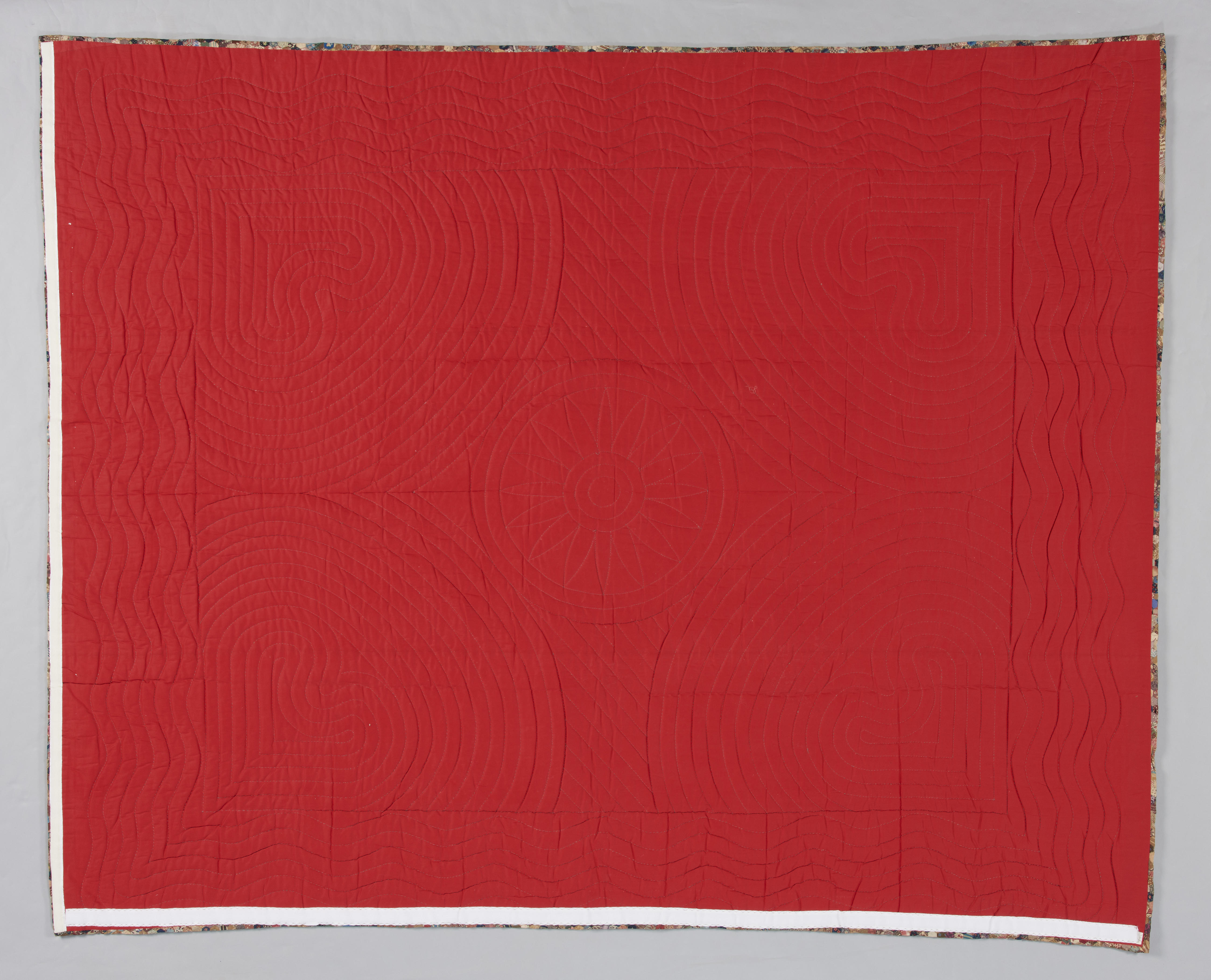 Lappendeken met een bovenzijde van bijna zestienduizend aan elkaar genaaide zeshoekjes. De hoekjes van 2,3 centimeter zijn van diverse soorten bedrukte katoen. De deken heeft een patroon dat het effect geeft van in elkaar overvloeiende kleuren vanuit het rode centrum. Dit patroon gaat mee met de zeshoekige vorm van de lapjes. Rondom het middenveld zijn ...