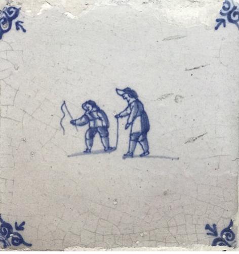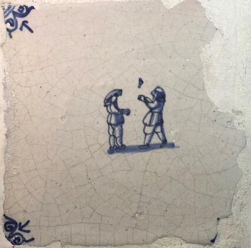 Tegel van aardewerk met tinglazuur voorstellende kin...